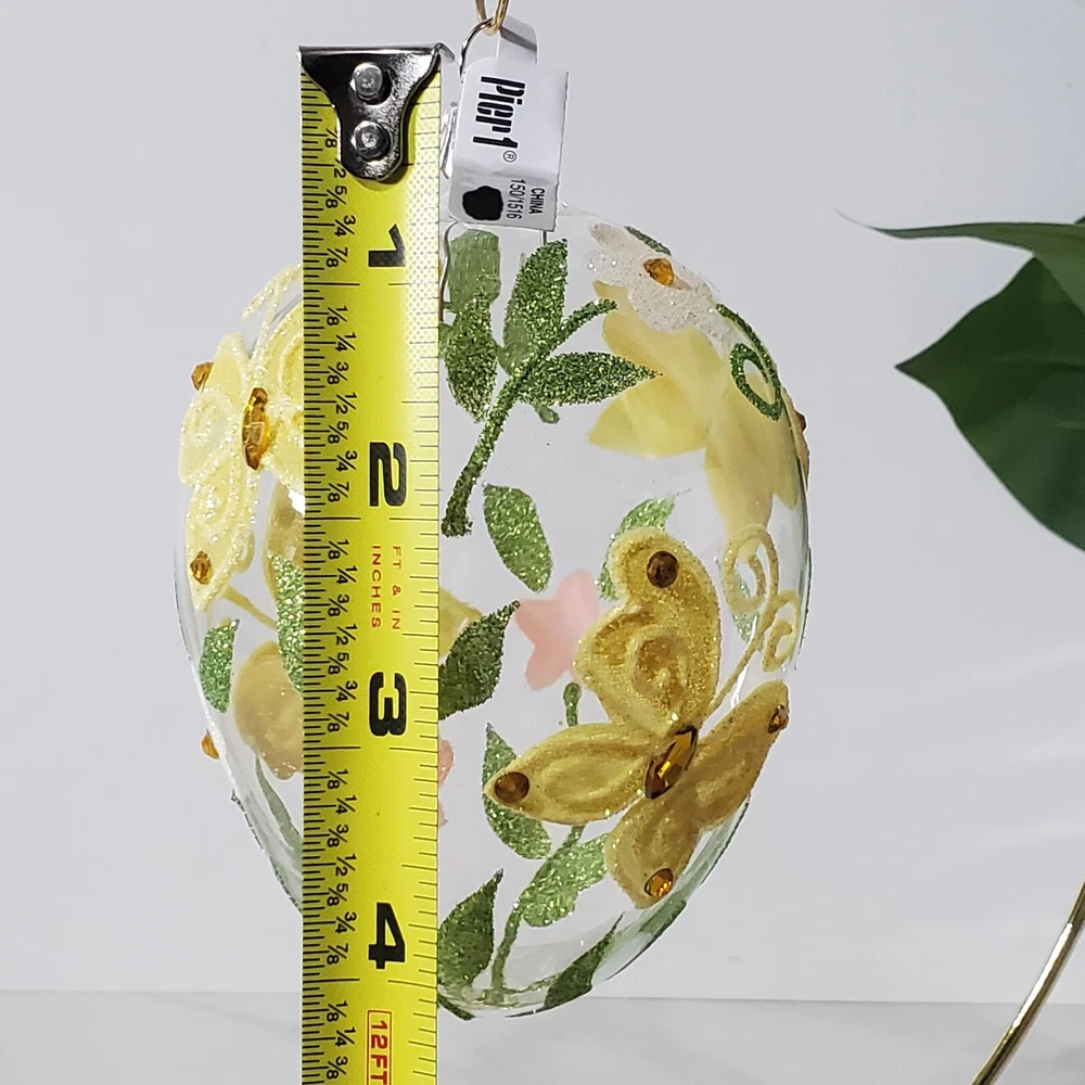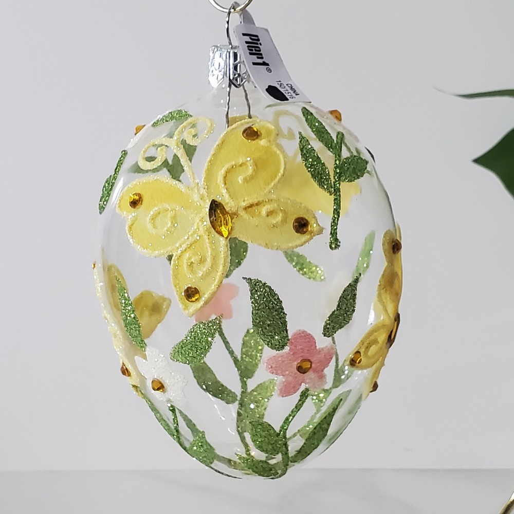 Pier 1 Glitter Butterfly Design Easter Egg Ornament Clear Glass Large Rare In good condition No cracks or breaks **Please view all photos for condition and measurements Thank you for viewing our products. PRODUCT SOLD AS IS. Please Message With Questions Prior To Purchase. If you have an issue with any of our items please reach out to us prior to contacting eBay. Thanks! Please note: We do sell new and used items. Our used items are pre-owned / pre-loved & may show signs of wear. Please view all photos for details, size, & imperfections as they are a form of the descriptions in addition to what is stated in the description section. We will do my best to inspect each item to find the best quality items possible. We do not include/replace batteries in any of our items unless they have been supplied by the manufacture and are in new unused condition. If an item is sent to you NEW / SEALED and you open it or remove the tags, it is NO LONGER ELIGIBLE FOR RETURN. Opened items / Removed tags - Means the item is NO LONGER in its original state and can no longer be sold as NEW. -Thank you for your understanding We are often asked about shipping cost. We are excited about your purchase and take pride in your package arriving to you undamaged. We wrap and cushion all necessary items prior to shipping which adds weight to your package. Unfortunately, this is not optional. Thank you for your understanding. We do not accept returns or issue refunds however in the event we do accept your return or issue a refund we do not reimburse your original shipping fee. Due to how eBay handles international shipping we do not accept any international returns. Thanks again!