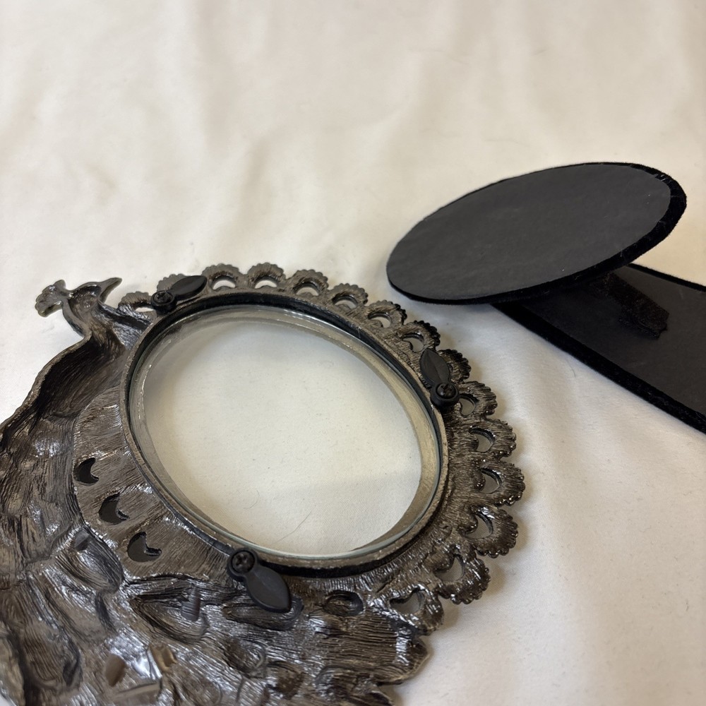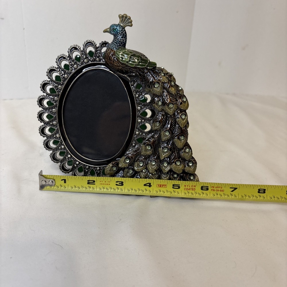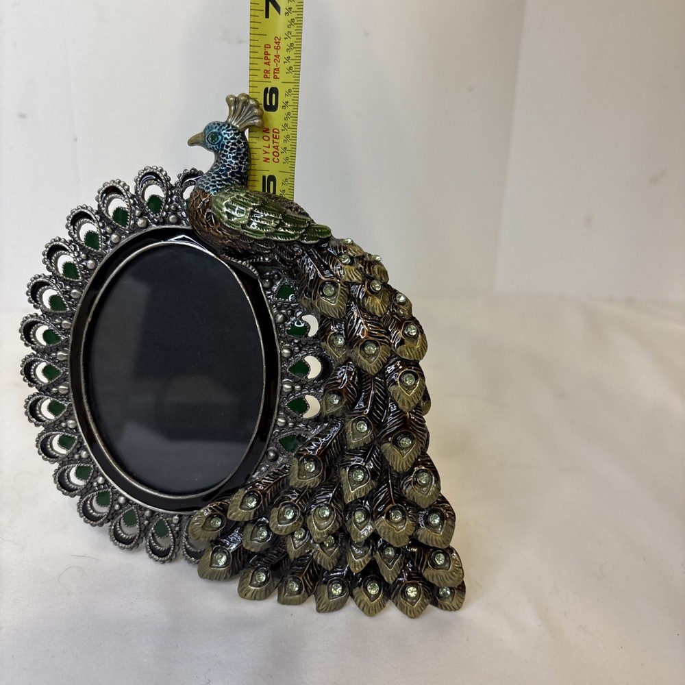 Pier 1 Peacock Picture Photo Frame Oval Rhinestone 3" x 2.5" Free Standing Decor. Condition is Used. Shipped with USPS Ground Advantage.