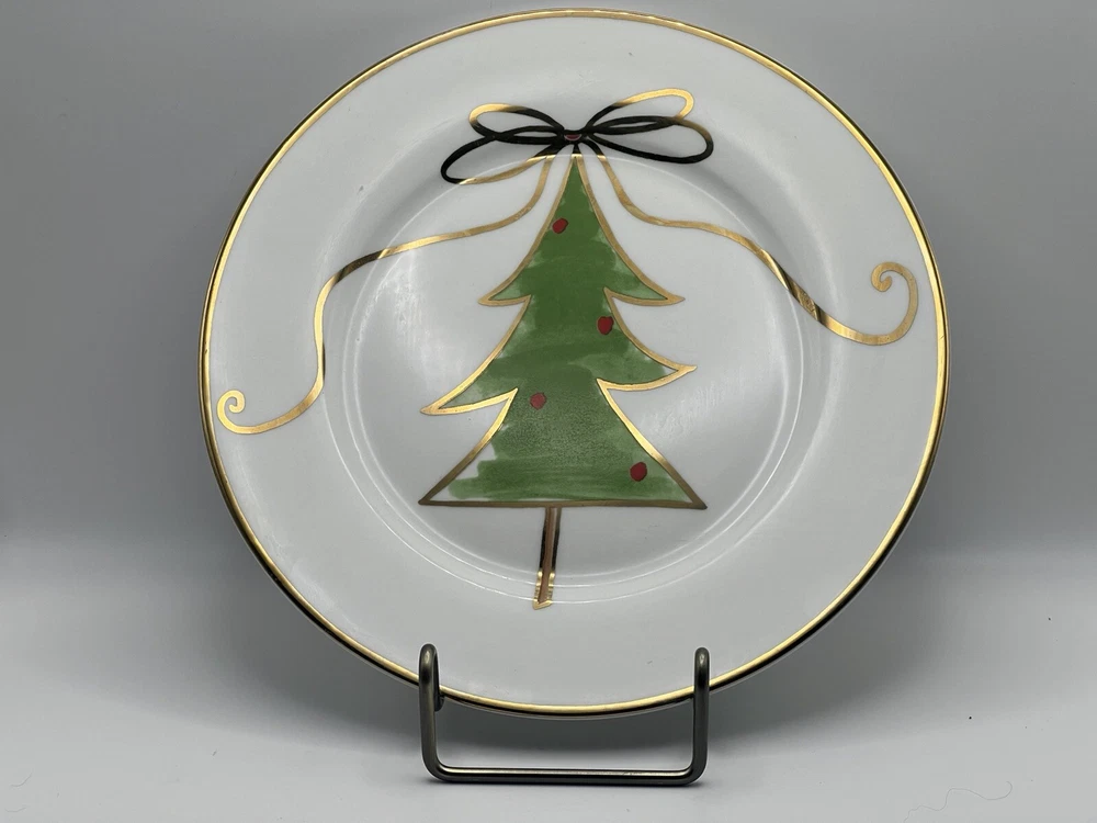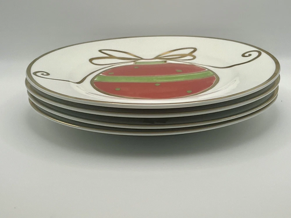 Pier 1 Porcelain Christmas Dessert Plates Reindeer Star Tree Ornament Set Of 4 Approximately 7.5” diameter. USPS Priority and Ground Advantage Shipping Offered.