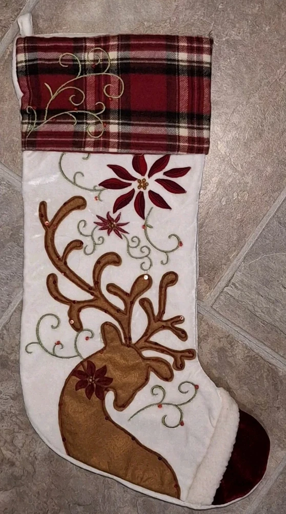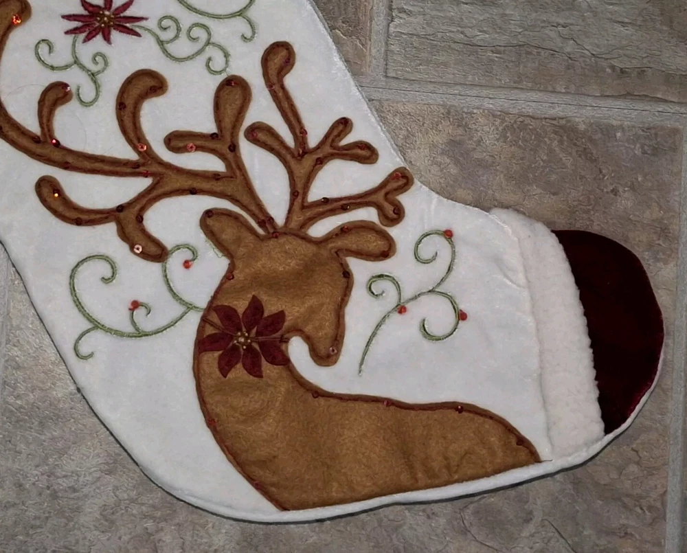 Pier 1 Reindeer Christmas Stocking Reindeer Sock Sequins Embellished