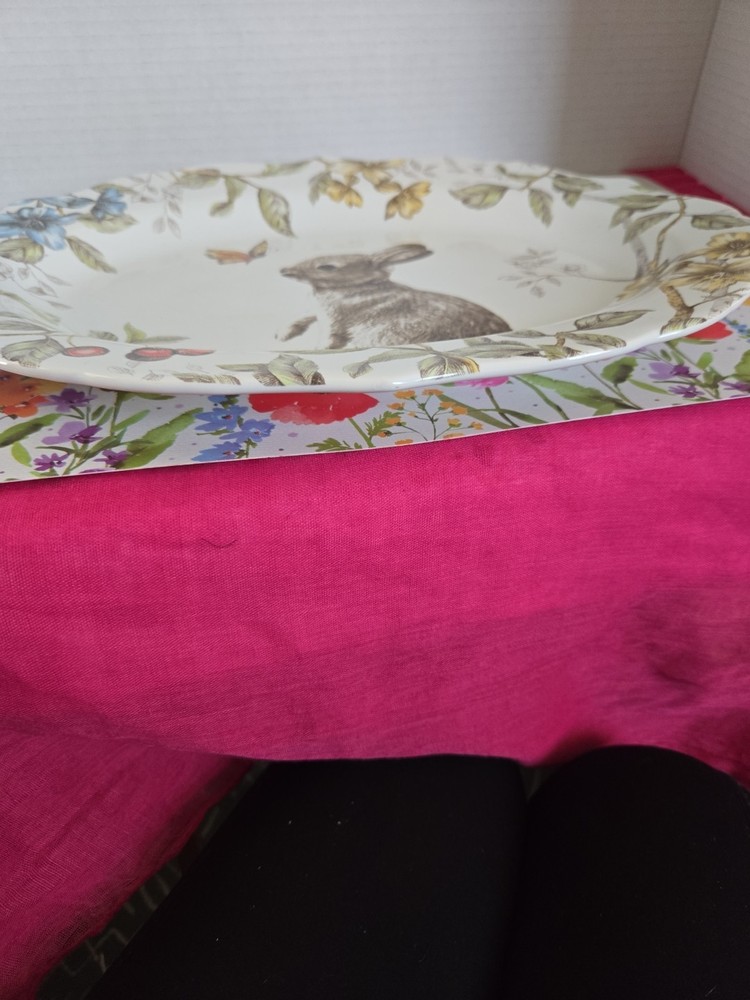 The Pier One "Sofie The Easter Bunny Serving Platter is a charming and festive addition to your Easter festivities. This multicolor ceramic tray features a cute animal print pattern of an Easter bunny, perfect for serving up treats or snacks during the holiday. With a glossy finish and dishwasher-safe convenience, this oval-shaped tray is both practical and stylish for your table setting. Made by The Pier brand in Indonesia, this full-size serving platter is sure to delight guests and bring joy to your Easter celebration.