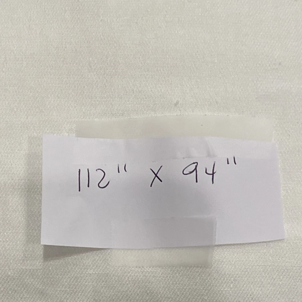 Large piece of heavy white fabric good for dinner napkins, tablecloths or other projects. Measures 112” X 94”. Details as per pictures. Wash prepped ready to sew.