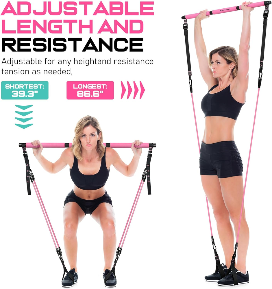 Pilates Bar Kit with Resistance Bands - Multifunctional Home Workout Equipment for Women and Men, Fitness and Yoga Bar Enhances Strength Training and Toning