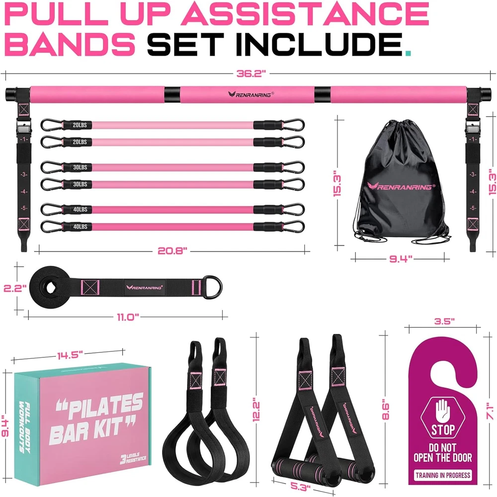 Store New Arrivals Add to Favorite View Feedback Contact Fast deliveries to the customer's home Quality customer service John Make the customers happy! Pilates Bar Kit with Resistance Bands, Multifunctional Pilates Bar for Women & Men with Heavy-Duty Metal Adjustment Buckle, Pilates Home Equipment for Full Bodyworkouts Description Multifunctional and All-In-One Pilates Bar Kit: The RENRANRING pilates set is the most complete pilates home equipment on the market. It has 1 Multifunctional Pilates Bar, 2 Resistance Bands Handles, 2 Non Slip Foot band, 3 Pair Exercise Bands:20, 30, 40LBS, 1 Door Anchor, 2 Workout Guide, 1 Carry Bag, 1 Box. Multiful matching of pilates gym accessories and resistance bands allow you to enjoy the most professional workout at home Advanced Squat Bar and Quickly Adjust: Upgrade pilates stretch fusion bar composed of three steel pipes, with wrapped in soft 5mm thick foam pad, to provide you with suprem comfortable holding experience. Bilateral come with newly upgraded heavy duty metal adjustment buckle and nylon rope with clear graduations. Just press the button easily, you can adjust the nylon rope to the desired length more quickly and accurately when training different movements Easy to Assemble and Portable: Portable pilates bar workout women equipment at home pilates equipment with 3 circle threaded, ten seconds to complete the connection and disassembly of the stick, very easy to operate. The included portable bag allows you to easily store all the home gym accessories of the multifunctional pilates reformer equipment and save a lot of space. You can take it with you when exercise outdoors or travel, and all accessories weigh only 2.87 pounds Full Body Workout and Fits for All: Whether you are beginner or profession, you can use our pilates kit for yoga, pilates, stretching, fitness and other training programs, 20lbs, 30lbs and 40lbs of resistance bands can be combined into 20lbs to 180lbs of resistance to meet the needs of various exercises.You can use it to open your shoulders, beautify your back, shape the S shaped curve, and create a peach hip Pilates Equipment: We also provide Pilates exercise guide it can help you make the most of your new workout equipment at home or the gym. It can help you improve your strength, flexibility, and balance, which is strong, durable, and non-slip Product Description Upraded Pilates Bar Kit With Resistance Bands For Women - Our pilates bar kit with resistance bands Fit with different Exercising Equipment, convenient for you to exercise multiple parts of your body, which helps a lot to have body in good shape, build muscle, lose weight. 1 High-quality Pilates Bar 2 Detachable Pilates Bar 3 High Elastic Latex 4 Exquisite Packaging Easy, Fast Assembly and Disassembly! Easy, Fast Assembly Please install and remove the Pilates bar slowly and carefully, otherwise you may easily pinch your fingers! Easy, Fast Disassembly Please install and remove the Pilates bar slowly and carefully, otherwise you may easily pinch your fingers! Full Body Coordinated Movement Maintains and improves normal posture, achieves body balance. Resistance Training It can effectively shape the body shape and is very suitable for dancers and athletes Prenatal Aid for Pregnant Women Relieve stress, improve discomfort symptoms during pregnancy, and help smooth delivery in the future Improve Flexibility for Seniors Improve the functional ability of older adults, and aid in treating many chronic diseases 1 Pilates Method 2 Shaping Muscles 3 Pregnancy Exercise 4 PhysicalTherapy 5 Various Exercise Top Choice of Pilates Buying Pilates Bar Kit for oneself, parents, loved ones, and friends is the beginning of a surprise. 1 Easy To Install 2 Adjustablele Length 3 Exercise Handle 4 Hands and Foot Bands 5 Perfect Resistance Bands Explore Other Great Products from RENRANRING Add to Cart Add to Cart Add to Cart Add to Cart Add to Cart Add to Cart Add to Cart Customer Reviews 4.5 out of 5 stars 11,010 4.4 out of 5 stars 3,485 4.4 out of 5 stars 3,485 4.6 out of 5 stars 1,061 4.4 out of 5 stars 662 4.6 out of 5 stars 89 4.7 out of 5 stars 2,838 Price $7.99 $ 7 . 99 $23.99 $ 23 . 99 $23.99 $ 23 . 99 $18.98 $ 18 . 98 $13.96 $ 13 . 96 $8.99 $ 8 . 99 $9.98 $ 9 . 98 Standard Use Full-body stretching aide Full-body stretching aide Arm & exercise aide Arm & exercise aide Legs & exercise aide Arm & exercise aide Arm & exercise aide Targeted Body Part Full body Full body Upper body Upper body Full body Upper body Upper body Perfect For Stretching, rehab & exercise Stretching, rehab & exercise Flexibility, rehab & fitness Exercise & fitness Stretching, rehab & exercise Stretching, rehab & exercise Flexibility, rehab & fitness Multi-Use Tool ✔ ✔ ✔ ✔ ✔ ✔ ✔ Professional Quality ✔ ✔ ✔ ✔ ✔ ✔ ✔ Item Thickness 5 Millimeters Style Modern Fitness, Pink Unit Count 1 Count Tension Level 20~100LBS Color Pink Number of Resistance Levels 3 Material Natural Rubber, Heavy Duty Woven, Elastic Foam Warranty Description 1 year Package Weight 1.59 Kilograms Item Weight 2.87 Pounds Suggested Users unisex-adult Model Name Pink ‎Pilates Bar Kit with Resistance Bands Recommended Uses For Product Workout equipment, Exercise equipment, Workout Team Name Pilates bar kit with resistance bands Sport Physiotherapy, Exercise and Fitness, Pilates, Body Building, Strength Training Special Feature Adjustable,Stackable,Built-In Handle Item Package Dimensions L x W x H 14.76 x 8.07 x 3.03 inches Included Components 1* Multifunctional Pilates Bar, 2* Resistance Bands Handles, 2* Non-Slip Foot Band, 6* Exercise Tube Bands,1* Door Anchor, 1* Workout Guide 1* Carry Bag, 1* Box ABOUT US We offer the best prices around on high quality products. Our E-store includes media such as books, movies, music and games while offering electronics, toys, sporting apparel, clothing, tools, general home, garden items and more. SHIPPING We are always working hard to ensure your package arrives as soon as po