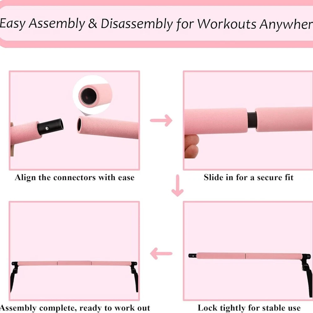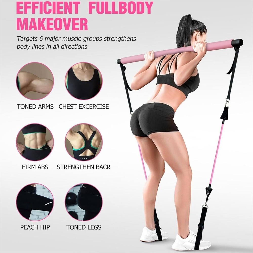 Full Body Fitness Workouts Equipment: The Bar Kit is designed as all-in-one workout equipment, helping sculpt your dream body, exercise muscles, and reduce weight. The pilates bar kit can be used for various types of common core exercises including resistance bands, stretching, barbells, rowing machines, weightlifting, yoga kits, and other fitness equipment, which means that without going to the gym, now you can get the same results right from your home or anywhere you like. 6 Natural Latex Resistance Bands: The Pilates Bar Kit include 3 pairs of resistance bands (20lb/30lb/40lb) made of durable break resistant latex with poles and climbers Buckle, you can adjust the strength of the resistance bands to train according to your level. Premium Materials and Design: The Pilates bar is made from high-quality meterials to ensure durability and comfort. It features a 3-section detachable threaded steel rod with soft, comfortable foam grips that are non-slip and sweat-resistant, allowing you to hold it easily for stable and safe workouts. Various Kinds of Exercise Methods: Crafted resistance band bar kit is an ideal home workout equipment and provides many kinds of exercise methods to easily exercise your arms, back, hips, and legs. Besides, this pilates bar kit comes with 2 comfortable handles and 1 door anchor, so you can use them and choose one or more resistance bands to make a new exercise project. Customer Service: Your complete satisfaction is our ultimate goal. We guarantee you will love this home gym equipment. If you have any questions about product use, please contact u s immediately. This pilates bar kit is suitable for individuals who are 5'-5.8' tall. If you do not feel any resistance during use, you can cross the resistance bands, adjust the length of the woven straps attached to the Pilates bar, and add resistance bands of different weights to increase resistance. High Elastic Foam : Surface is easy to clean, not prone to indentation or deformation. Easy to Install : Simply rotate to complete the installation, convenient and portable. Update Nylon Fabric Connection : Use a sturdy 360° swivel latex ball cover. You can add three types of bands together on each side for more resistance weight as needed. 2 in 1 Design : The adjustable resistance band and wider foot strap, can meet the exercises of arms and legs at the same time. Item Package Dimensions : 13.94 x 5.47 x 4.29 (L x W x H)inches Package Weight : 4.01 lbs