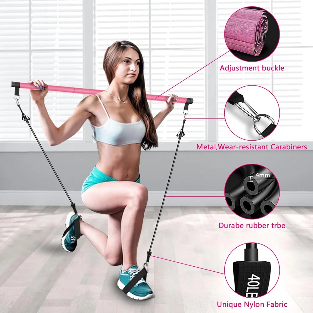 Pilates Bar Kit with Resistance Bands,Pilates Bar with Stackable Bands Workout E