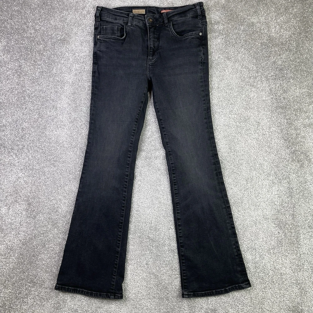 Style: Bootcut Color: Black Country/Region of Manufacture: Türkiye Theme: Bohemian, Preppy, City, Modern, Classic Material: Cotton Blend Vintage: No Features: Stretch Inseam: 28.5 in Size: 28 Department: Women Fabric Type: Denim Brand: Pilcro Fit: Regular Personalize: No Rise: Mid (8.5-10.5 in) Season: Winter, Summer, Spring, Fall Garment Care: Machine Washable Closure: Zip Pocket Type: 5-Pocket Design Accents: Logo Size Type: Regular Handmade: No Waist Size: 28 in Type: Jeans Pattern: Solid Fabric Wash: Dark