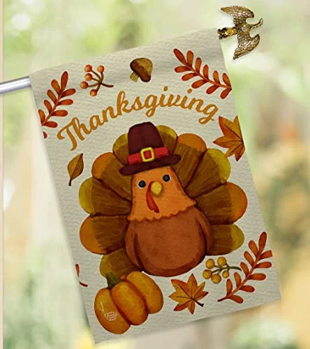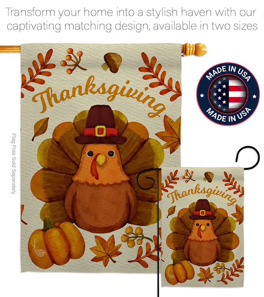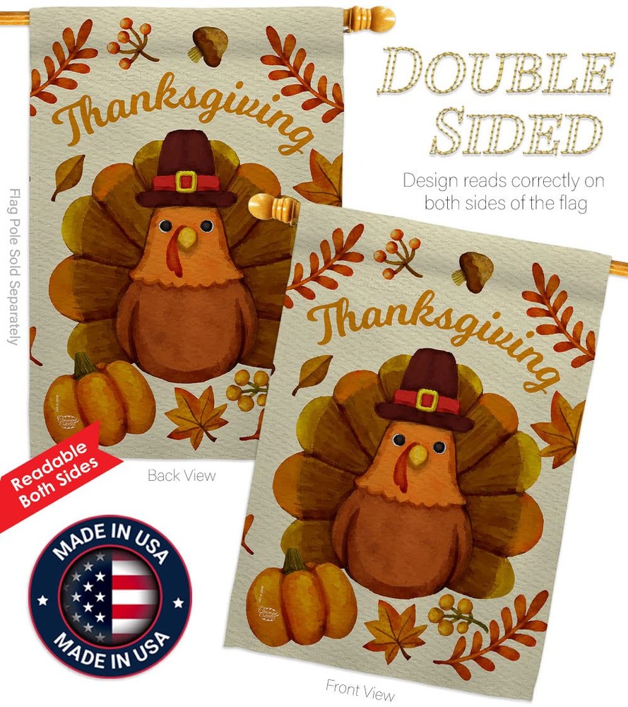 Pilgrim Turkey House Flag Set with Eagle Fall Thanksgiving Decor Gobble Pumpkins
