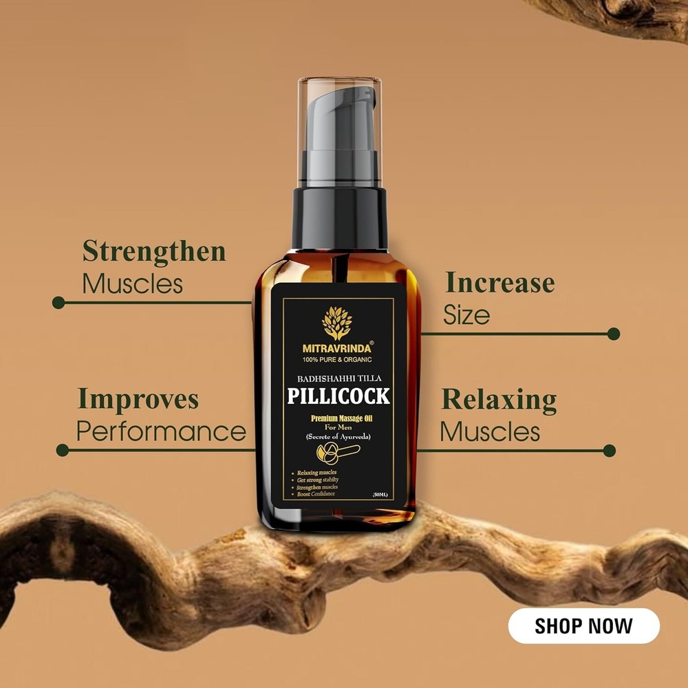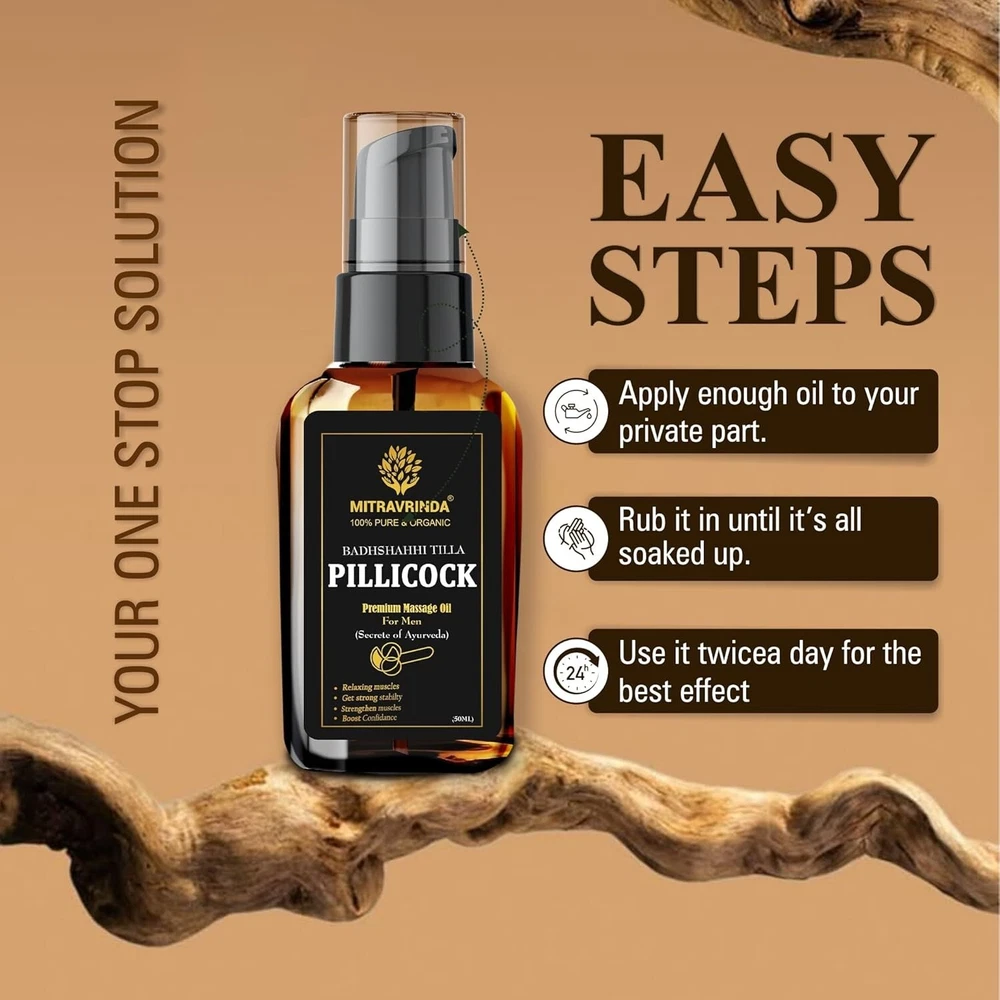 Pillicock Ayurvedic Massage Oil for Men Natural Formula to Lift-Up