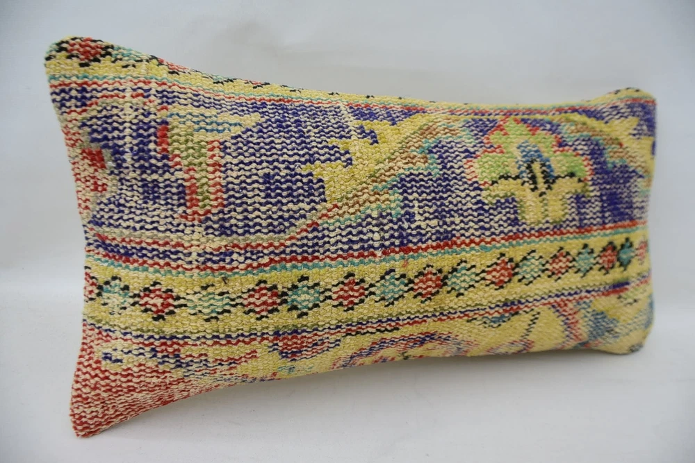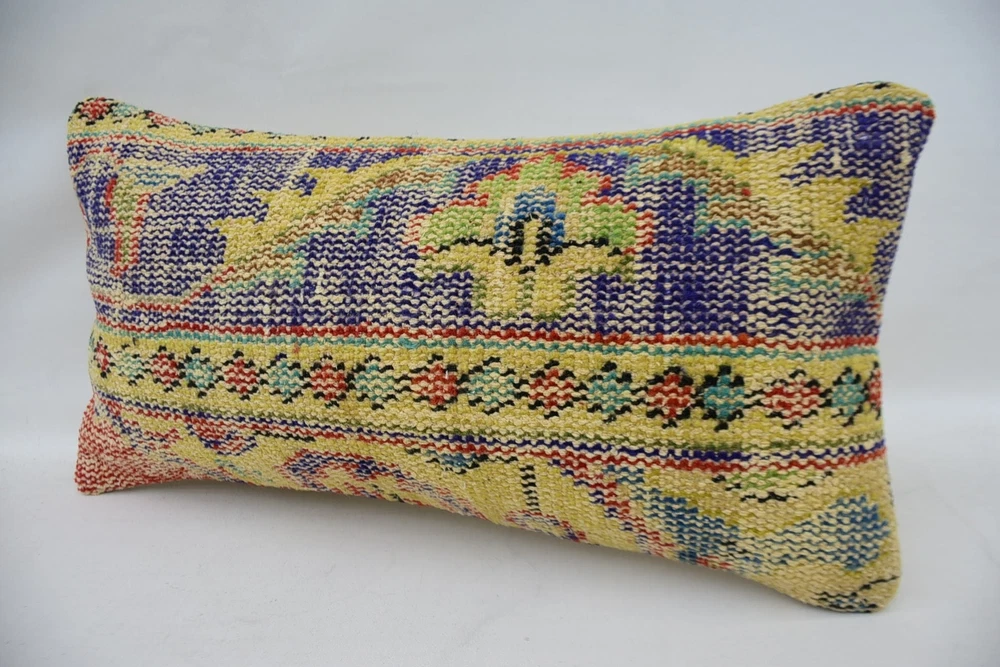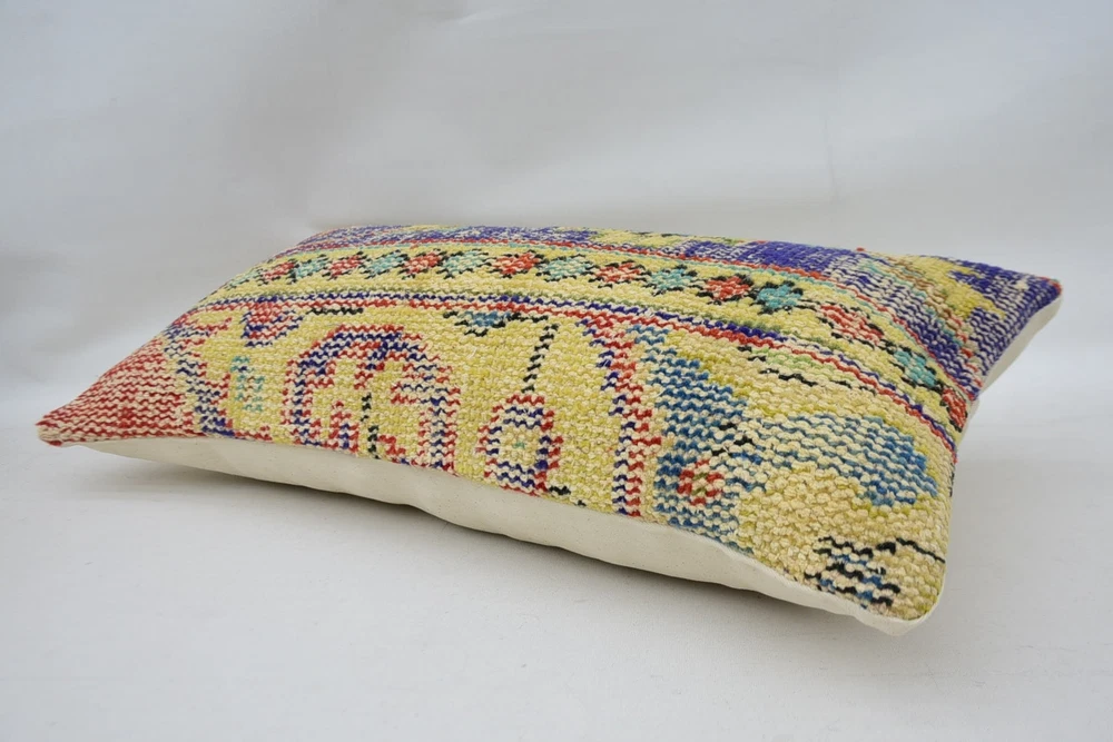 Pillow Covers, 12"x24" Yellow Kilim Pillow, Designer Pillows