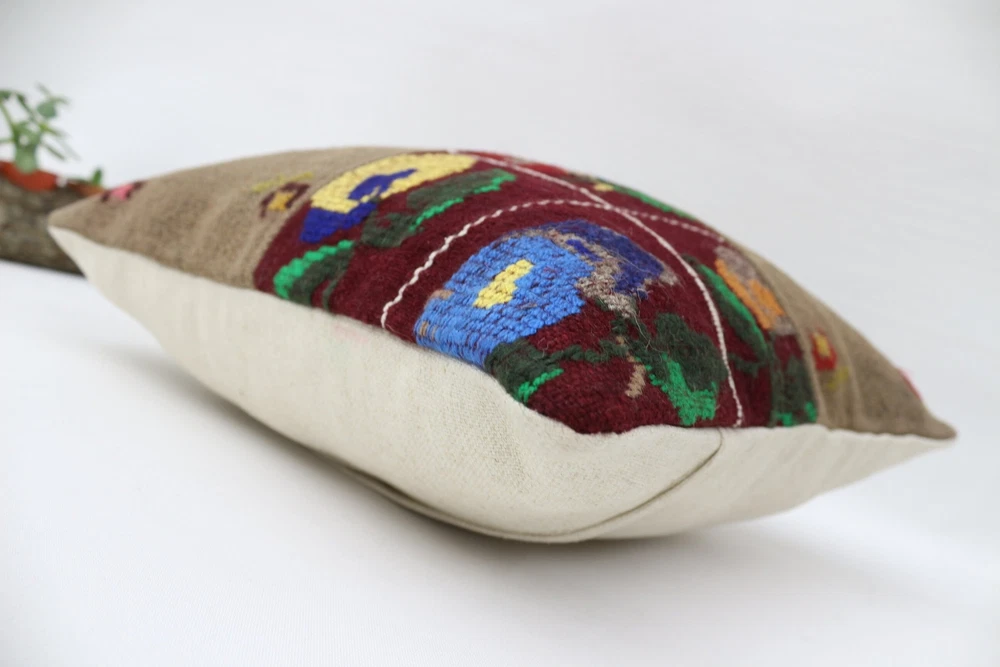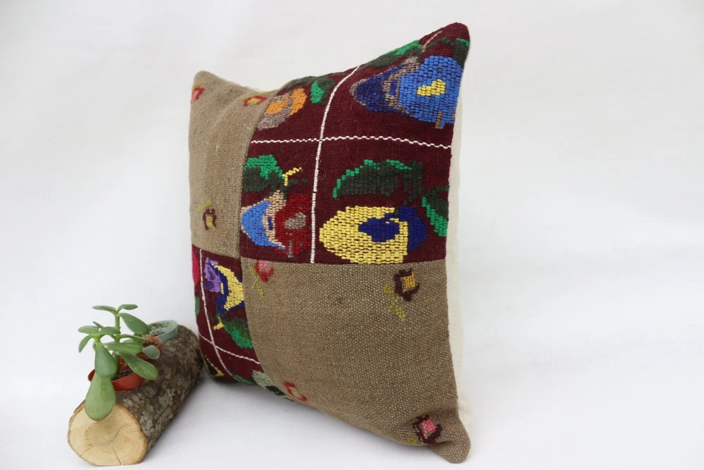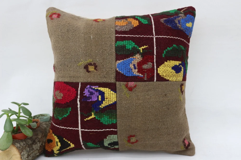 Kilim Pillow Details: All of my beautiful pillow covers or cushion cases are designed and made by me. I am making my throw pillow covers from handmade vintage rugs, Turkish rugs. Therefore, each of my vintage kilim pillowcase is one of kind. These cushions covers are piece of an art. The size of this pillow is 16 x 16 inches or 40 x 40 cm. The front side of this decorative pillow cover, cushion cover is wool on wool vintage kilim rug. The backside of this throw is high quality cotton fabric with a high quality zipper. This listing has 2 option for this handmade pillow. You can choose with insert or without insert. The listing photos is with insert in the pillowcase which is just for demonstration purpose. All of my vintage Turkish rugs have been professionally washed before I cut them as pillow case or cushion case so these kilim covers are 100 posent clean and ready to use. Due to the age and handmade nature of these vintage rugs, there might be imperfections and flaws that are not considered defects. This is a piece of a handmade vintage rug with minor signs of wear consistent with age and use that give it an antique look. You can see the condition of the rug pillow clearly in the detailed photos. I am going to ship your order of decorative pillow as soon as possible. I usually ship in the next day with DHL Express or FedEx which will deliver the kilim pillow, cushion cover just in 3-5 business days. It is my responsible until you receive pillow cover or pillow cover with insert at your door. If the pillow cover or insert get lost or damage during the shipping, I will ship the new kilim pillow cover or pillow insert for free as soon as possible. I take photos of my throw pillows indoor with professional camera which shows the real colors. The photos of these Turkish pillow covers are not altered. Keep in mind the colors of the rug vary slightly in different lights. Please contact to me for additional photos. I take the photos of my vintage rugs outside with daylight to show you the real and natural colors. My photos are not altered. Keep in mind the colors of the rug vary slightly in different lights. Please contact to me for additional photos. SATISFACTION GUARANTEED for your order in my shop. Your SATISFACTION is the most important to me. Please write me if you have any question or if you don't like anything from my pillow covers, cushion covers. If any reason, you are not happy from your Turkish pillow cover, I accept return without any hassle. Please read my shop policies for details. This cushion case or pillow cover can be used as decorative throw pillow, gift pillow, Christmas pillow case, bedding pillow, lumbar pillow, sofa pillow, bohemian pillow, boho pillow. You can find in any kind of Turkish kilim pillow cover in different design such as striped pillow, embroidered pillow, and geometric pillow.