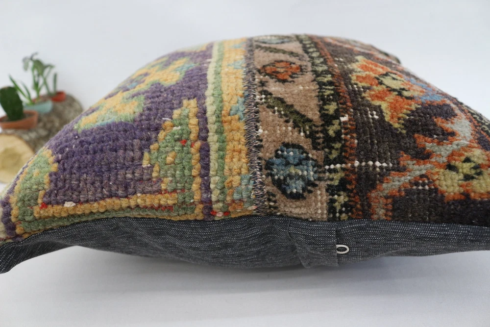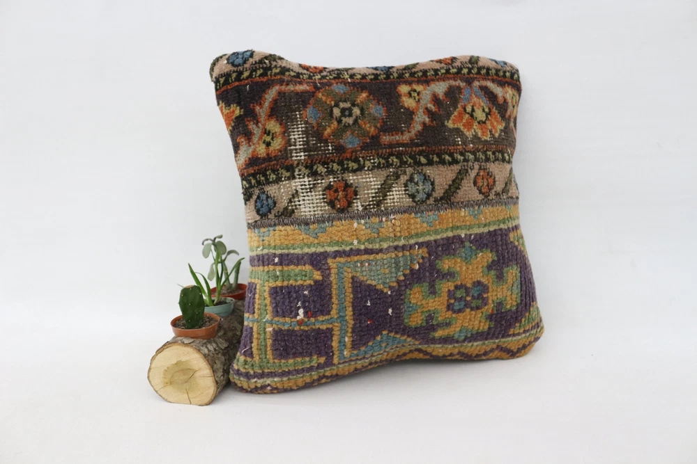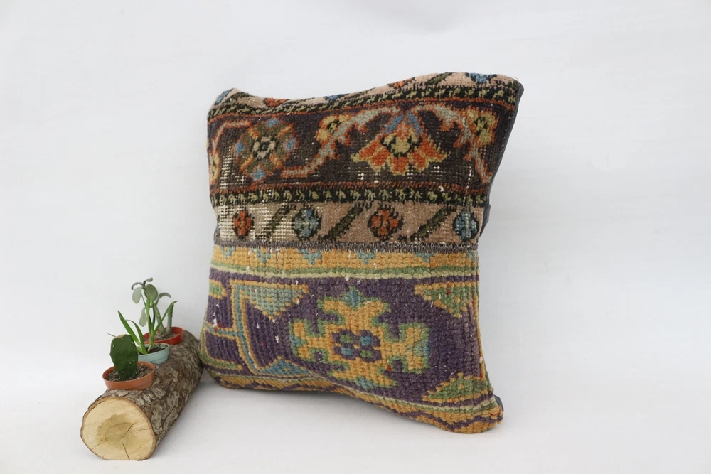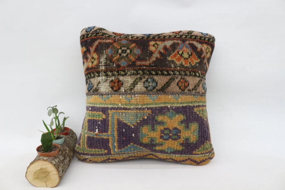Kilim Pillow Details: All of my beautiful pillow covers or cushion cases are designed and made by me. I am making my throw pillow covers from handmade vintage rugs, Turkish rugs. Therefore, each of my vintage kilim pillowcase is one of kind. These cushions covers are piece of an art. The size of this pillow is 16 x 16 inches or 40 x 40 cm. The front side of this decorative pillow cover, cushion cover is wool on wool vintage kilim rug. The backside of this throw is high quality cotton fabric with a high quality zipper. This listing has 2 option for this handmade pillow. You can choose with insert or without insert. The listing photos is with insert in the pillowcase which is just for demonstration purpose. All of my vintage Turkish rugs have been professionally washed before I cut them as pillow case or cushion case so these kilim covers are 100 posent clean and ready to use. Due to the age and handmade nature of these vintage rugs, there might be imperfections and flaws that are not considered defects. This is a piece of a handmade vintage rug with minor signs of wear consistent with age and use that give it an antique look. You can see the condition of the rug pillow clearly in the detailed photos. I am going to ship your order of decorative pillow as soon as possible. I usually ship in the next day with DHL Express or FedEx which will deliver the kilim pillow, cushion cover just in 3-5 business days. It is my responsible until you receive pillow cover or pillow cover with insert at your door. If the pillow cover or insert get lost or damage during the shipping, I will ship the new kilim pillow cover or pillow insert for free as soon as possible. I take photos of my throw pillows indoor with professional camera which shows the real colors. The photos of these Turkish pillow covers are not altered. Keep in mind the colors of the rug vary slightly in different lights. Please contact to me for additional photos. I take the photos of my vintage rugs outside with daylight to show you the real and natural colors. My photos are not altered. Keep in mind the colors of the rug vary slightly in different lights. Please contact to me for additional photos. SATISFACTION GUARANTEED for your order in my shop. Your SATISFACTION is the most important to me. Please write me if you have any question or if you don't like anything from my pillow covers, cushion covers. If any reason, you are not happy from your Turkish pillow cover, I accept return without any hassle. Please read my shop policies for details. This cushion case or pillow cover can be used as decorative throw pillow, gift pillow, Christmas pillow case, bedding pillow, lumbar pillow, sofa pillow, bohemian pillow, boho pillow. You can find in any kind of Turkish kilim pillow cover in different design such as striped pillow, embroidered pillow, and geometric pillow.