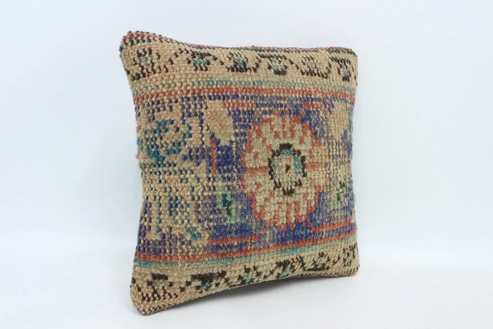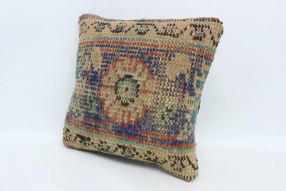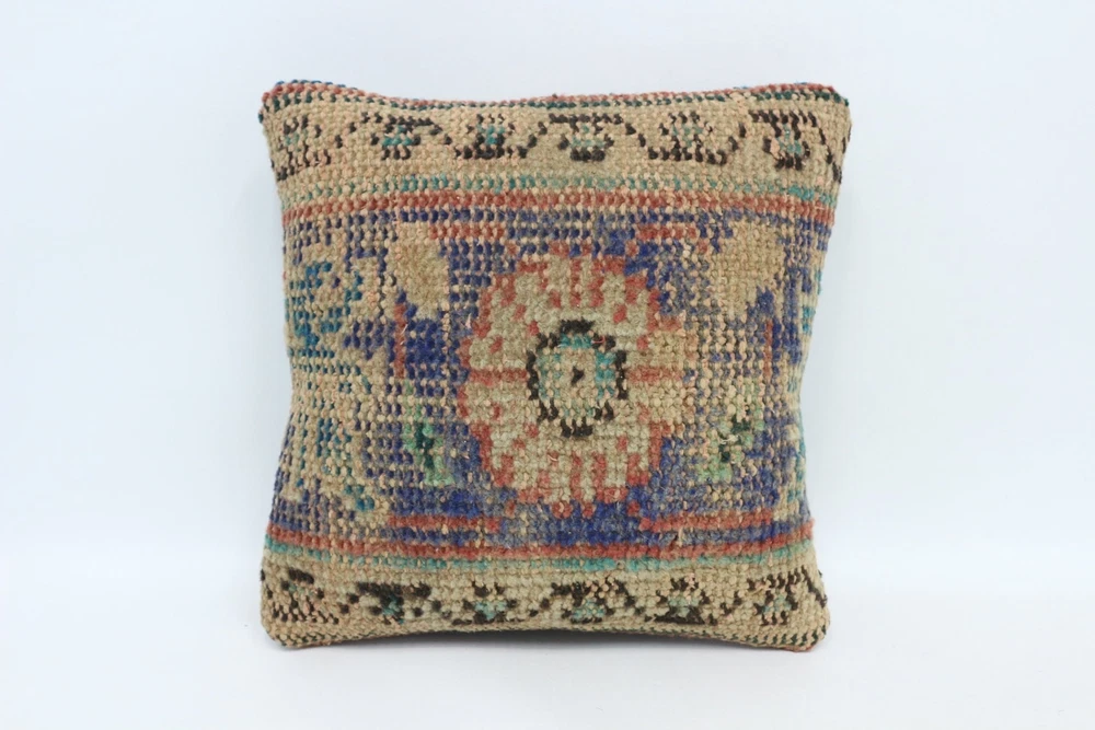 Pillow for Sofa, Antique Pillows, 12"x12" Blue Pillow, Vintage Kilim Pillow