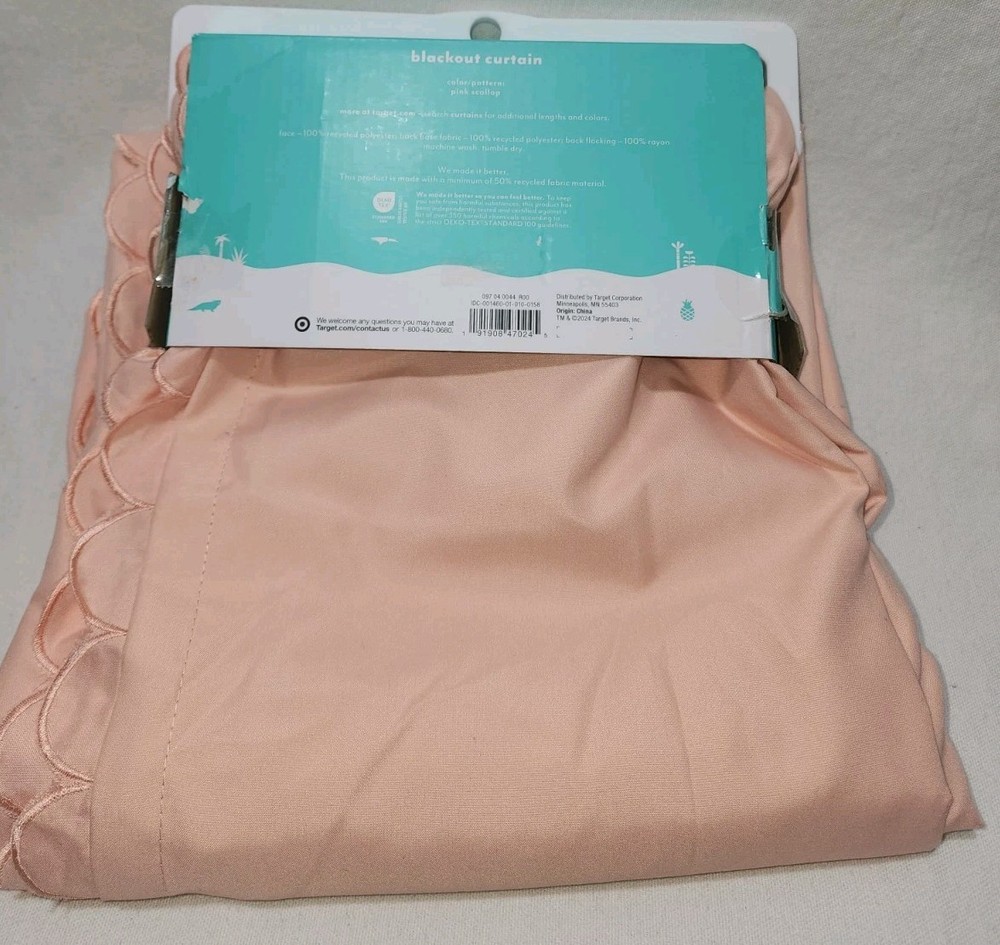 Pillowfort 42" x 84" Pink Scallop Blackout Rod Pocket &Back Tabs Curtain Panel