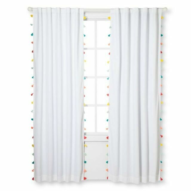 Pillowfort Blackout Curtain Panel with Tassel Trim in White 63x42 Inches