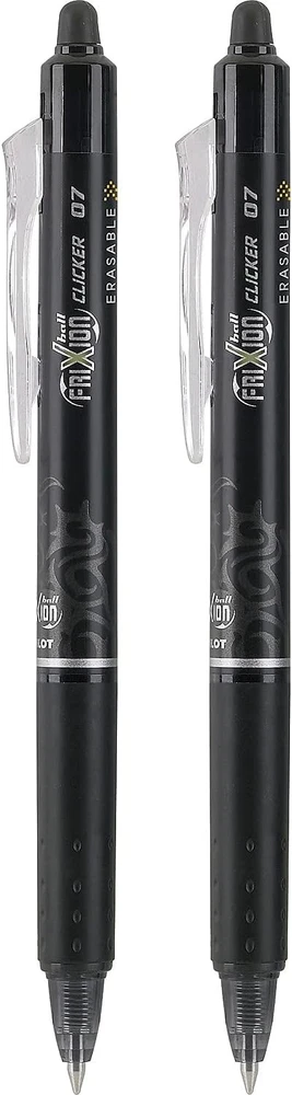 Product Description Pilot FriXion Clicker Retractable, Erasable, Refillable, Gel Pens, (31460) Fine Point, Black Ink, 2 Count (Pack Of 2) Clicker Erasable Gel Pens combine the convenience of a retractable with incredible erasable FriXion ink. Erase and rewrite repeatedly without damaging documents. Thermosensitive gel ink formula disappears with erasing friction of latex-free rubber plug eraser on the pen. Erasing leaves no residue or debris. Pen can write on the same spot that has been erased. Retractable gel pen delivers smooth-writing gel ink and is not recommended for signatures examination papers or official documents where writing needs to remain permanent or for exposure to extreme temperatures. Retract by pressing the clip down. Size:2-Pack | Color:Black FriXion Frixion Clicker pens write smoothly and erase cleanly without smudges or marks, keeping your notes clean and easily legible. The ink that refills these Pilot pens is heat sensitive, erasing with the friction from the included erasers. Use the refills with frixion ball and frixion Clicker pens. Fine Point is excellent for everyday office use. Compatible with frixion ball and frixion Clicker pens. Greener choice - contains 20% postconsumer recycled content. These erasable gel pens come in Black ink. PILOT FRIXION CLICKER: This pen combines the ease of a retractable pen with Pilot's erasable thermo-sensitive gel ink. No wear or tear so you can erase & rewrite until it's right without ruining the page. ERASABLE, RETRACTABLE, REFILLABLE: The FriXion gel ink pen writes smooth & erases clean. Available in a variety of vibrant ink colors: black, blue, red, turquoise, purple, navy, pink, & green. WRITE & CREATE FEARLESSLY: If you love FriXion erasable ink pens & markers, you'll want to try Pilot's full line of erasable Clickers, ColorSticks, Fineliners, Colors Marker Pens, & Highlighters. TRUSTED QUALITY: We've been making pens for over 100 years. Whether you're taking notes, stocking up on school or office supplies, or writing in a bullet journal, Pilot has the perfect pen for you! POWER TO THE PEN: Pilot makes exceptional writing instruments to suit all your needs. We have fountain, ballpoint, retractable, erasable & gel ink pens, whiteboard markers & more for every writing style. Error-Free Writing Powered by Thermosensitive Erasable Gel Ink The words disappear with erasing friction giving you the power of unlimited do-overs. Writes Smooth, Erases Clean Whether you are at school, at home or in the office, create masterpieces as you use the built-in erasing tip to revise repeatedly until it's just right without messy eraser crumbs or damaging the paper. Innovative FriXion is the First and Only STEM Pen The innovative, thermo-sensitive ink technology that powers every FriXion erasable pen, marker and highlighter also make it a valuable tool for teaching and demonstrating Science, Technology, Engineering and Math principles. Quick Drying & Bleed Free Quick drying erasable ink doesn't feather or bleed through the paper. This retractable pen is ideal for all of your writing and creating tasks.