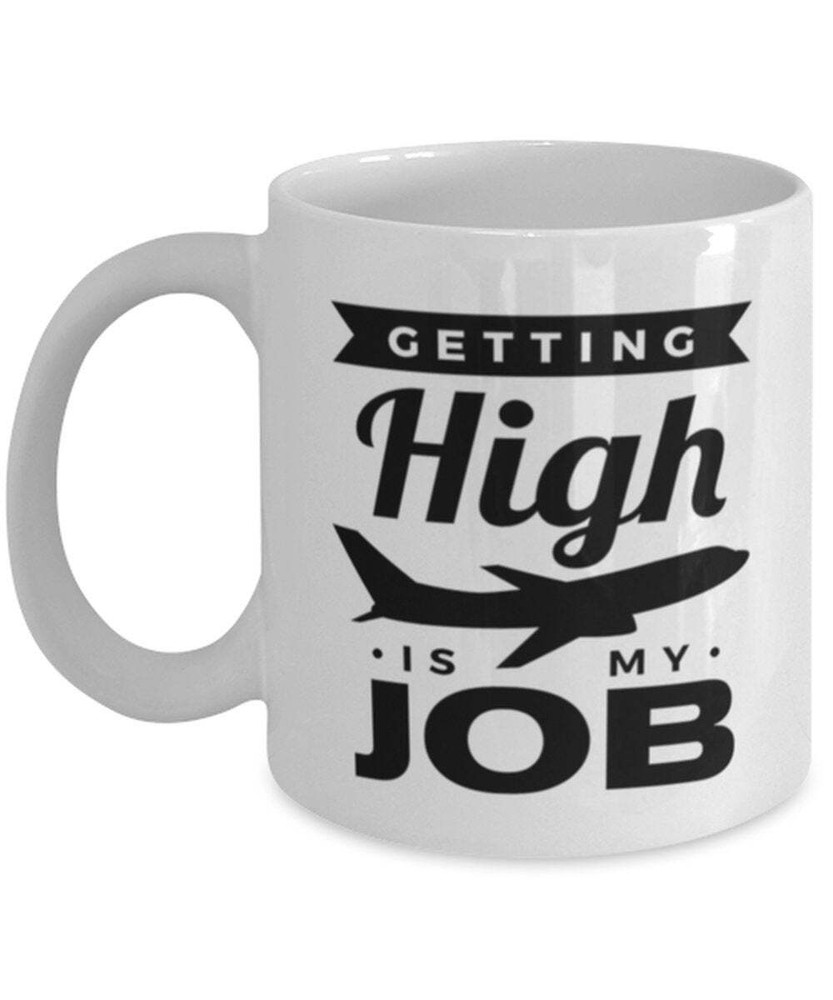 Pilot Funny Coffee Mug Getting High Is My Job White Coffee Mug Product Details.. This high quality 11oz. ceramic white mug has a premium hard coat that provides crisp and vibrant color reproduction sure to last for years. Perfect for all hot & cold beverages. The highest quality printing possible is used. It will never fade no matter how many times you wash it. Material: 100% Ceramic. Print both sides. Dishwasher and Microwave Safe. High Gloss + Premium White Finish. Printed in the U.S.A. Personalized & Custom. We support personalized and custom mug to add custom, when placing an order, you can add notes to the "order note" in shipping address section. Also you can contact us directly via message. Shipping Info. Ready to ship in 1 to 2 business days, All products are made-to-order and proudly printed in the United States. Shipped by USPS and DHL, You will receive your order in 5-7 days. Replace & Refund. All products are defective during shipping broken, chipped will be replaced free of charge. You are not satisfied with the product, we will refund 100% money to you. If any other issues arise, please do not hesitate to message, we would be more than happy to assist you.