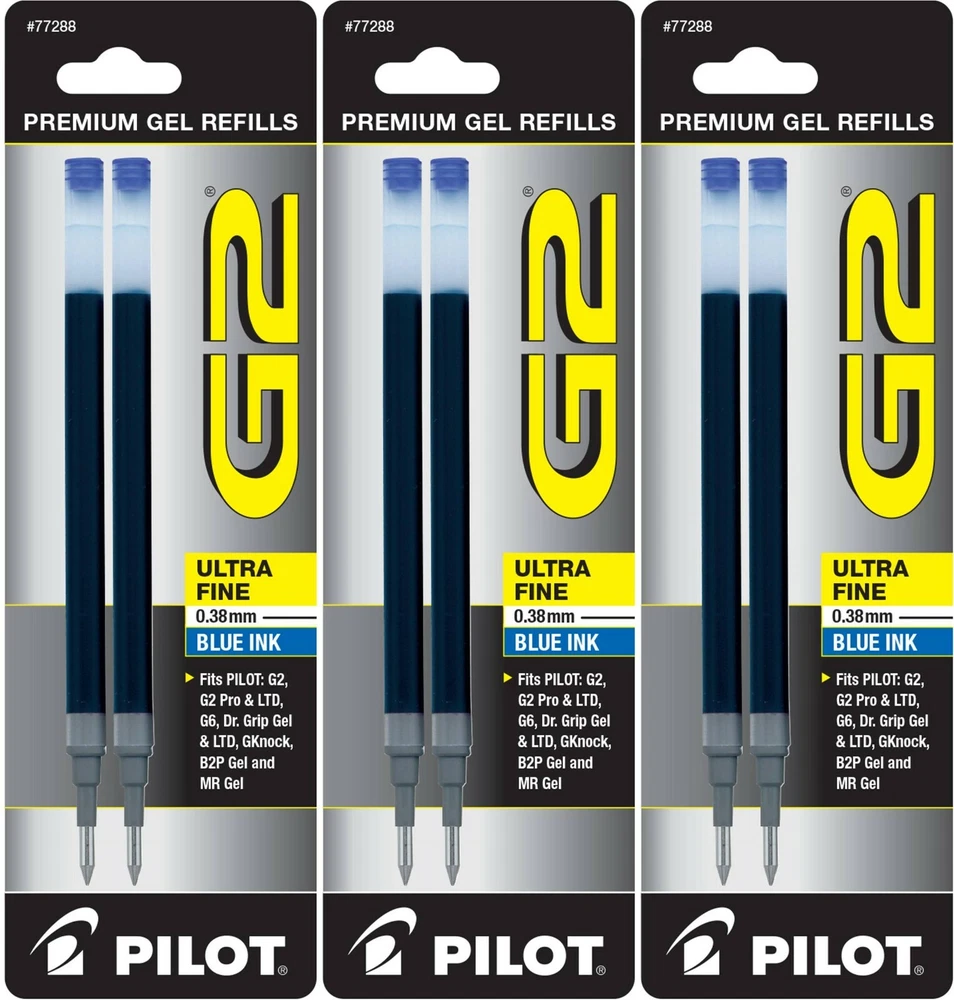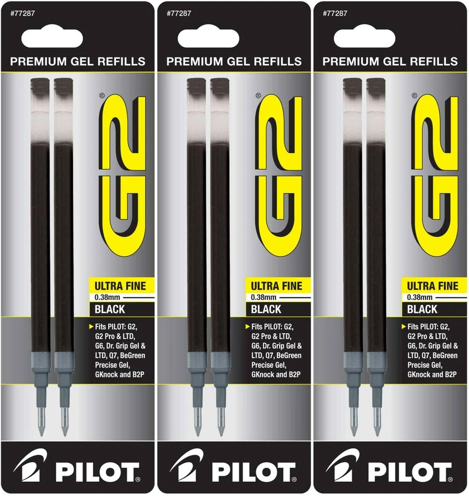 Pilot G2 0.38 Gel Ink Rolling Ball Pen Refills, 0.38mm Ultra Fine Point, 3 Packs