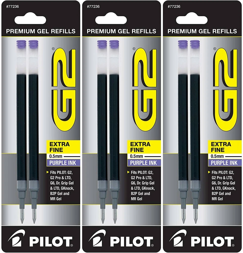 Pilot's high quality refills and accessories extend the life of Pilot products, creating ultimate value; an economic and environmentally-friendly option. Point Type: Extra Fine 0.5mm Super-smooth writing Long lasting Smear-proof 5 colors available for extra fine point size Each pack includes 2 refills. Sold as set of 3 Packs. Refill fits the following pens: G2, G2 Fashion Collection, G2 Mosaic Collection, G2 Pro, G2 PenStylus, G6, Dr Grip Limited, Dr Grip Gel, G-knock BeGreen, B2PGel, and Pilot MR Gel Roller. G2 is the ultimate pen for the everyday overachiever. The Pilot G2 writes smoothly, comfortably and includes 4 point sizes, 27 color options, and multiple barrel styles to suit every personality and situation-including a pen+ stylus option. So pick your perfect G2 because after all – pens aren’t one size fits all. Comfortable rubber grip Retractable & refillable