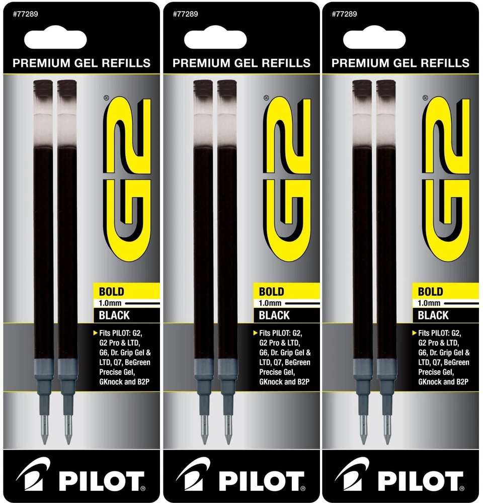 Pilot G2 Gel Ink Refill, 2-Pack for Rolling Ball Pens, Bold Point, Black Ink, Pack Of 3 = 6 Refills Pilot G2 Gel Ink Refill, 2-Pack for Rolling Ball Pens, Bold Point, Black Ink, Pack Of 3 = 6 Refills