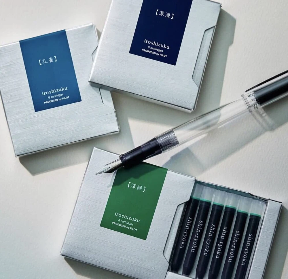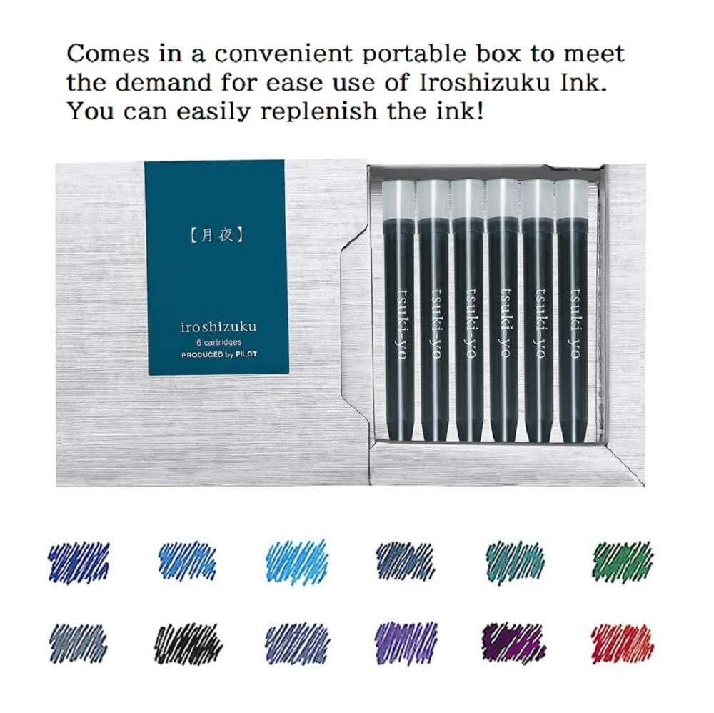 What is Iroshizuku? There are many beautiful nature and scenery in Japan, and they have very beautiful names. Iroshizuku series is a colorful ink created from the beautiful scenery. It's good to enjoy the colors according to the season, and it's good to enjoy your own lucky color, and to make your fountain pen life richer and more fulfilling, give you more joy and fun to write. Of the 24 color lineup of fountain pen Iroshizuku Ink, 13 popular colors are now available in cartridge type. Comes in a convenient portable box to meet the demand for ease use of Iroshizuku Ink. You can easily replenish the ink! Since the color name is also printed on the cartridge body, you can identify the ink color at a glance. Contents : 6 pieces (1 piece / 0.10cc) The solid black with elegant Pink Gold-accented tip and clip looks luxurious. Sensitive Rubber Tip is designed for use with most touch screen devices. I also works as a cushion when retracting or extending the tip. Beautiful looking Blue Black ink.