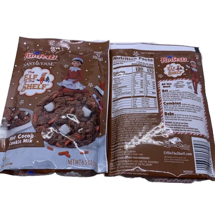 Add some festive cheer to your home with Pilsbury Funfetti Elf On The Shelf Hot Cocoa Cookie Mix. This baking mix is perfect for whipping up delicious cookies that are perfect for any occasion. With two pouches of 6.5 oz, you'll have everything you need to make these delicious treats. This cookie mix features a fun and festive design with colorful sprinkles that will add a touch of whimsy to your baking. The mix is easy to use and comes with clear instructions that even beginners can follow. So, get ready to bake some delicious cookies and share them with your friends and family.