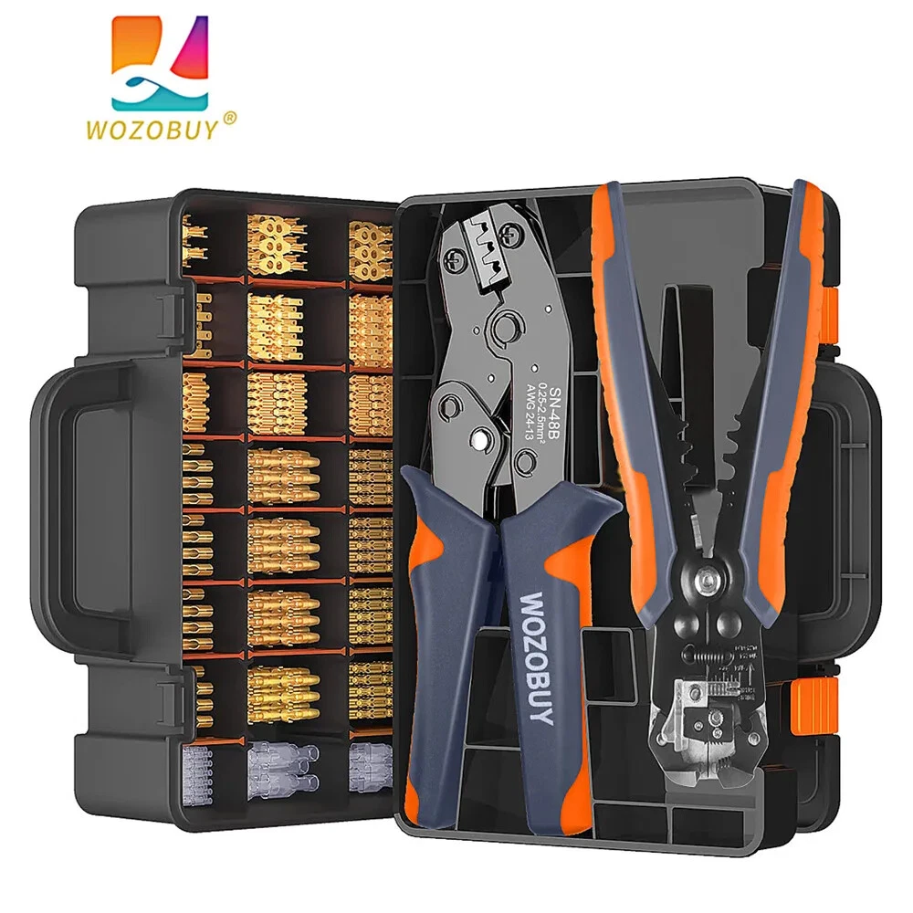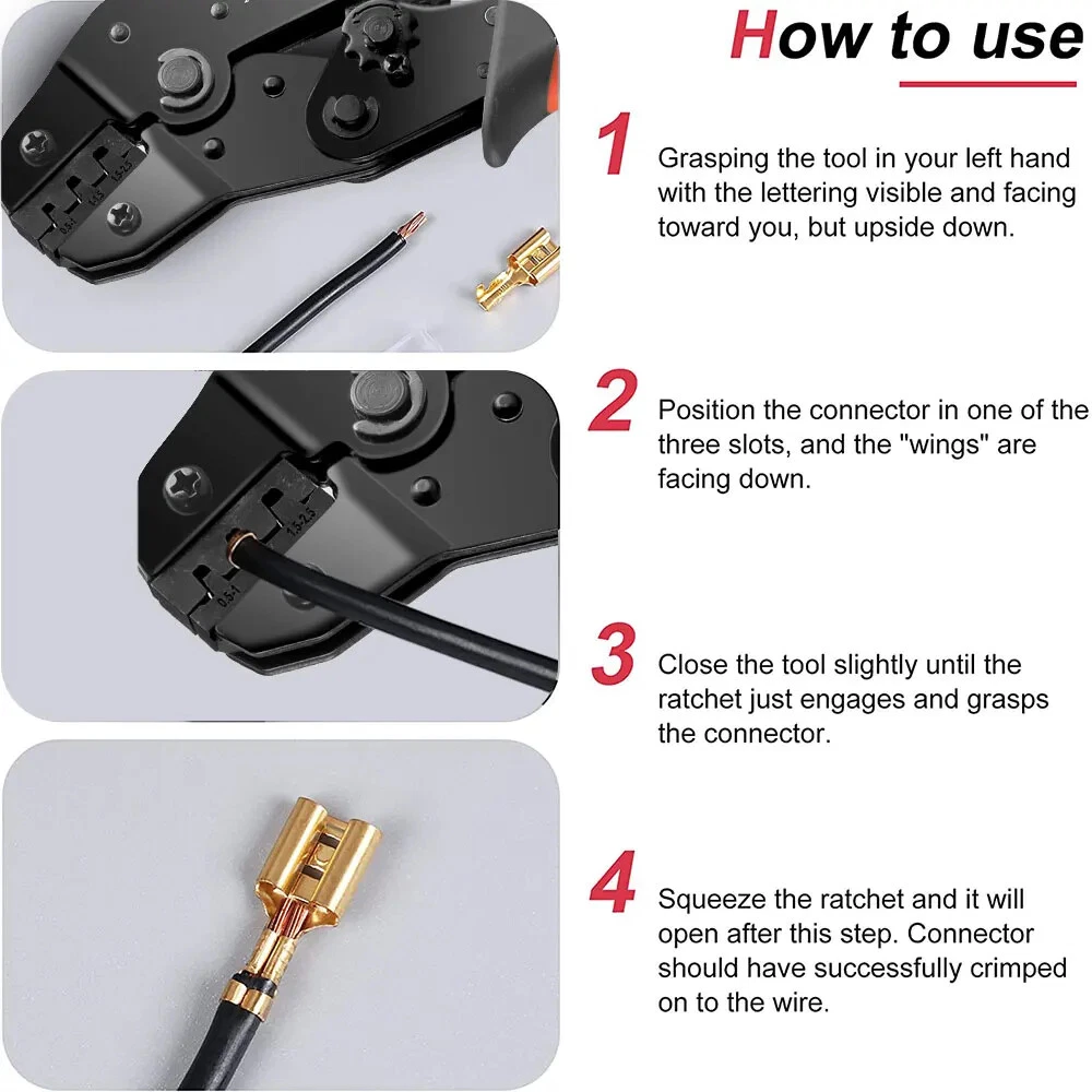 【Adjustable Crimping Tool】With an automatic adjustment ratchet mechanism, an adjustable locking device, and the function of releasing pressure points. crimper tool is designed to crimp 22-13AWG non-insulated open barrel, OEM-style terminals and wire splices. 【 Crimping Pliers Capacity】Crimping tool has a wide range of crimping capacity. It’s capable of crimping 2.8mm, 4.8mm and 6.3mm pitch open barrel terminals. 【Type and Size】The terminal block is made of copper, which has high conductivity, oxidation resistance and durability, enough to meet the needs of most DIY projects. 【Ring Terminal】Brass ring terminals, commonly used for cycling battery connections and ground connections, connecting aftermarket switches, ignition coils, ground wires, and similar items that require screws or bolts. 【Widely Application】The combination of crimping tool and spade bullet connectors can be widely used to home appliances, auto, audio system for battery or rocker switch quick connecting / disconnecting, motorcycle, scooter, auto, car, truck, boat,Arduino, 3D printer, PCB, jumper wire and other electronic DIY projects etc.