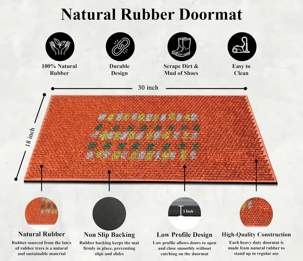 This stylish & unique doormat makes a perfectly fun addition to any porch, patio area or door. Use this mat to catch dirt as your guests enter your home or as decoration to show off your love of felines. This door mat withstands seasonal changes & can be used outside all year long. This transitional style copper & black rubber Door Mat is the perfect way to spruce up your floors & home decor while maintaining a level of practicality. MATERIAL AND LOW-PROFILE DESIGN: Our home doormat have large number of rubber pin on the surface. it is designed to be durable and sturdy, yet soft.The Low profile doormat measures 18x30" and is 1/2" thick,the door will open easily so forget about curling or getting stuck. CAPTURE DIRT AND EASY TO CLEAN: Funny designs and raised edges help this multifunctional mat catch dirt more effectively,removes debris better than other outdoor mats.This doormat helps to scrap off dirt,dust, grit, mud, sand,grass or snow and absorb moisture from shoe.The doormat indoor entrance can be cleaned quickly,just spray water over the outdoor rugs to get cleaned or by hand with a vacuum cleaner. DURABLE AND NON-SLIP BACKING: The outdoor doormats for entrance way outdoors has a powerful eco-friendly natural non skid rubber which prevents moisture leaks, that is safe for your floor ,and Our door mats will be remained in high-traffic areas, ensure a safety using.Our durable mat can be used for much longer time. UNIQUE PATTERN AND GREAT GIFT: The funny doormat is not fade and long lasting,rustic decorative design make your home or office feel friendly and welcoming.The welcome doormat is the perfect housewarming gift and a great holiday gift ideal for friends and family. INSIDE OUTSIDE WIDELY USE: Heavy duty entrance rug can be widely used be used as an indoor outdoor mat home doormat front door mat and shoe cleaning mat outdoor rug welcome mat farmhouse mat entrance mat kitchen rug garage floor mat dirty dog doormat pet mat and patio rug or as a shop entrance rug back, for door laundry living room lobby office patio business driveway and many more common areas. EASY TO CLEAN: Simply vacuum with a hand-held vacuum, sweep with a broom, or shake off outdoors or over garbage bins; for a deeper clean, wipe with a damp cloth and mild soap, or use a garden hose to rinse the doormat outdoors. RECOMMENDED CARE INSTRUCTIONS: Only for use in covered outdoor areas. Do not expose directly to sunlight or rain.