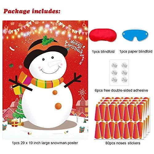 Return Policy Fast Delivery Trusted seller Pin The Nose On The Snowman Games Large Christmas Snowman Games Poster for Kids Christmas Snowman Party Decorations Christmas Party Games Supplies - 80 Noses Product Description Christmas Snowman Games Set Includes: 1pcs 29 x 19 inch large high gloss waterproof Christmas snowman poster + 1pcs polyester blindfold + 1pcs paper blindfold + 80pcs snowman nose stickers + 6pcs free double-sided adhesive. The Large Christmas Poster Games: The Christmas snowman poster made of high quality poster paper with glossy bright coating. Large and unique snowman design are very popular with kids, can bring more fun to the Christmas party games for kids. Huge Hit For Christmas Party: Pin the nose on the snowman party games set is perfect for Christmas theme party, birthday party, classroom party, kids games and so on, which also great as the Christmas party gifts for your kids and can be used as Christmas room decoration, home decoration and wall decoration. How To Play: Paste the poster on the wall with the adhesive tape, then wear the blindfold and paste the snowman nose stickers on the poster, the nearest child who post nose is the winner. Note: The poster is folded, t are creases. The snowman nose are stickers so they can't be reused. If the noses used up, you could make your own DIY noses for the next time. Shipping Returns Payment Shipping Shipping is FREE to all addresses other than APO/PO boxes in the lower 48 states. All our stock ships from US-based warehouses. Shipped via USPS or UPS (depending on location and package weight) Unless stated otherwise, all orders will ship within 24-72 hours of your payment being processed. Check our feedback to see the great reviews of FAST shipping we offer. Returns Seller does not accept returns Payment We currently accept payment via eBay managed payments only. Once payment is cleared, we will dispatch your shipment within 1-3 business days. Please refer to the "Shipping" tab for more information regarding shipping speed to your destination.