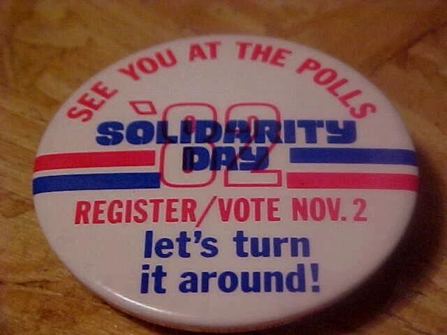 Pinback Button 2 Inch "SOLIDARITY DAY '82" VOTE NOV. 2 SEE YOU AT THE POLLS