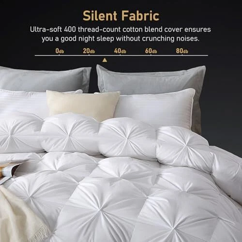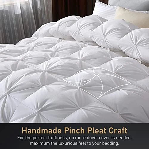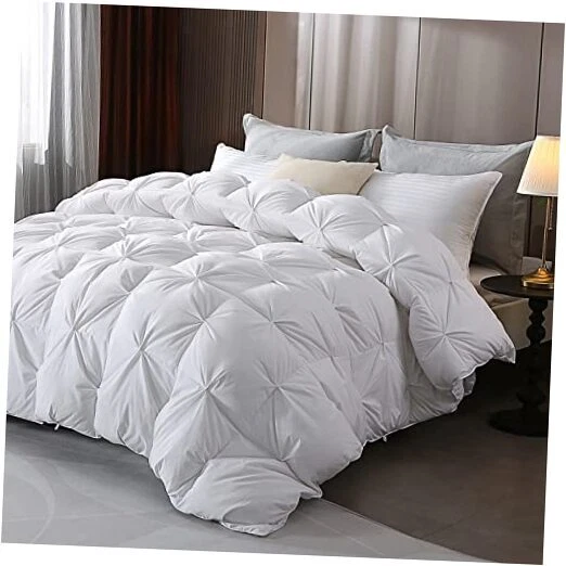 Return Policy Fast Delivery Trusted seller Pinch Pleat Down Feather Fibers Comforter Twin Size, Ultra Soft Cotton Blend Cover, Luxury Fluffy Duvet Insert with 8 Corner Tabs, All-Season Medium Warm Bed Comforter(White, 68"x90") Product Description Blooming Warmth: Features a pinch-pleated design, ensuring maximum loft and cloud-like warmth; premium filler provides both warmth and breathability Luxury Bedding Choice: Crafted from 400 thread-count cotton blend with a brushed finish; offers exceptional softness and an elegant touch with handmade pinch pleats for a sophisticated look Temperature Regulation: Perfect balance of warmth and breathability; maintains comfortable sleep temperature Elaborate Details: Constructed with a baffle box structure and double stitching to prevent filler leakage; features self-fabric piping for durability and loops with sewn corner tabs to secure the duvet cover Care Instructions: Vacuum-packed for shipping; fluff gently and allow a few hours to regain loft; use with a duvet cover to extend lifespan; spot clean or dry clean as needed Shipping Returns Payment Shipping Shipping is FREE to all addresses other than APO/PO boxes in the lower 48 states. All our stock ships from US-based warehouses. Shipped via USPS or UPS (depending on location and package weight) Unless stated otherwise, all orders will ship within 24-72 hours of your payment being processed. Check our feedback to see the great reviews of FAST shipping we offer. Returns Seller does not accept returns Payment We currently accept payment via eBay managed payments only. Once payment is cleared, we will dispatch your shipment within 1-3 business days. Please refer to the "Shipping" tab for more information regarding shipping speed to your destination.