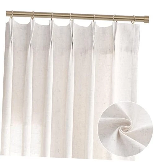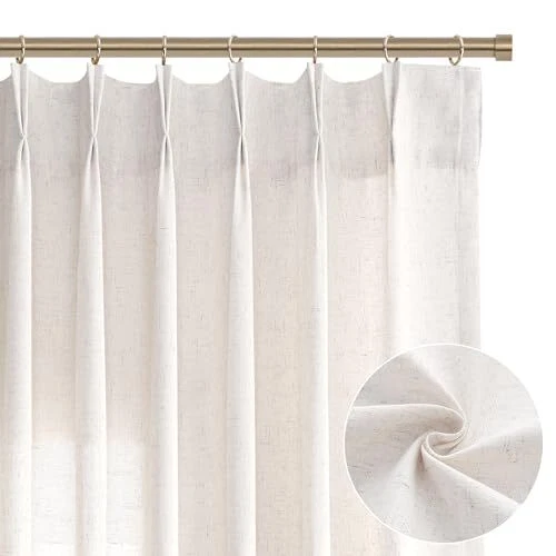 Pinch Pleated Semi Sheer Linen Curtains 50"W x 102"L (Pack of 2) Natural Beige