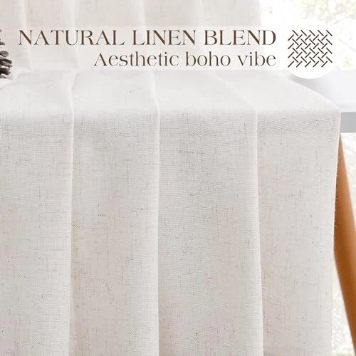 Included Components: Hooks Seasons: All Season Style: Country Rustic Water Resistance Level: Not Water Resistant Weave Type: Plain gtin13: Does Not Apply Product Care Instructions: Machine Wash UPC: Does Not Apply Opacity: Semi-sheer Inches Room Type: Office, Patio Doors, Bedroom, Living Room, Dining Room Lining Description: Partially Lined Item Length: 1 Pattern: Solid Special Feature: Window Treatments Brand: Does Not Apply Size: 50"W x 102"L (Pack of 2) Type: Does Not Apply Model Name: 2 Curtain Form: Sheer Curtain Top Style: Pinch Pleat Specific Uses For Product: Window Treatments Material: Linen Color: Natural Beige Manufacturer: Does Not Apply EAN: Does Not Apply Hanging Method: Back Tab Theme: Farmhouse MPN: Does Not Apply Item Height: 1 Number of Items: 2 Country of Origin: China Package Weight: 2.02 Kilograms Item Width: 1 Recommended Uses For Product: Home decor; Light control; Privacy; Suitable for various rooms in Item Weight: 4.44 pounds Date First Available: April 20, 2024 Fabric Type: 70% Polyester,30% Linen Product Dimensions: 102"L x 50"W