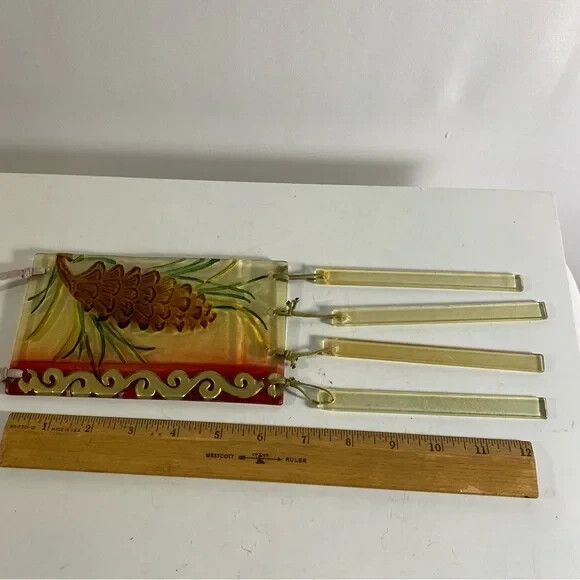 Enhance your home décor with this beautiful Seasonal Pine Cone and Pine Needles Glass Wind Chime. The traditional style and small size of this wind chime make it a perfect addition to any yard, garden, or outdoor living space. Crafted from high-quality glass materials, this wind chime is designed to bring a sense of serenity and peace to your home.The 12-inch wind chime features a lengthy leather strap that adds to its charm. Ideal for those who love traditional wind chimes, this piece is perfect for adding a touch of elegance to any space. Whether you're looking for a unique decoration for your home or a thoughtful gift for a loved one, this wind chime is sure to impress.