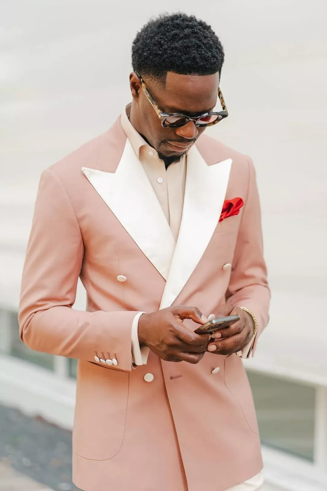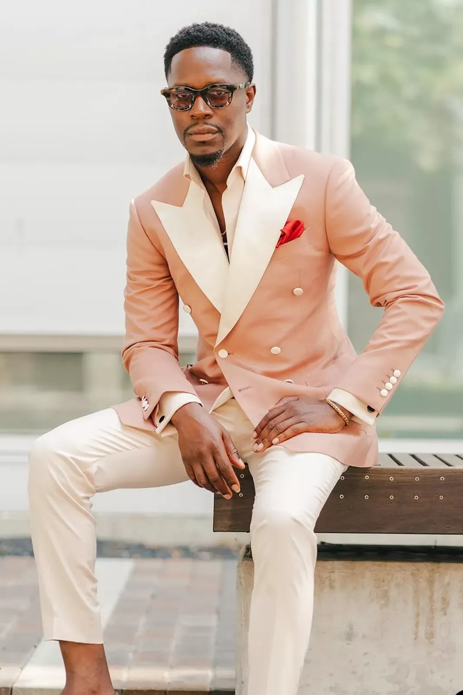 Pink 2Pcs Men's Suits Fashion Wedding Groom Prom Party Slim Fit Tuxedo Blazers
