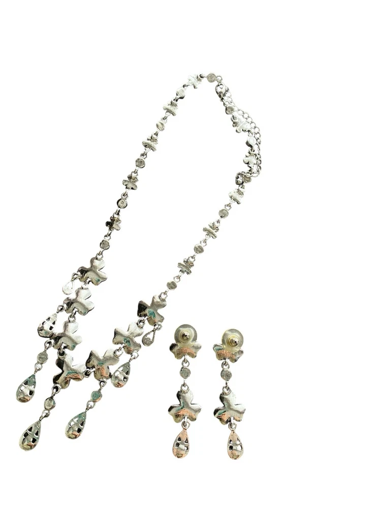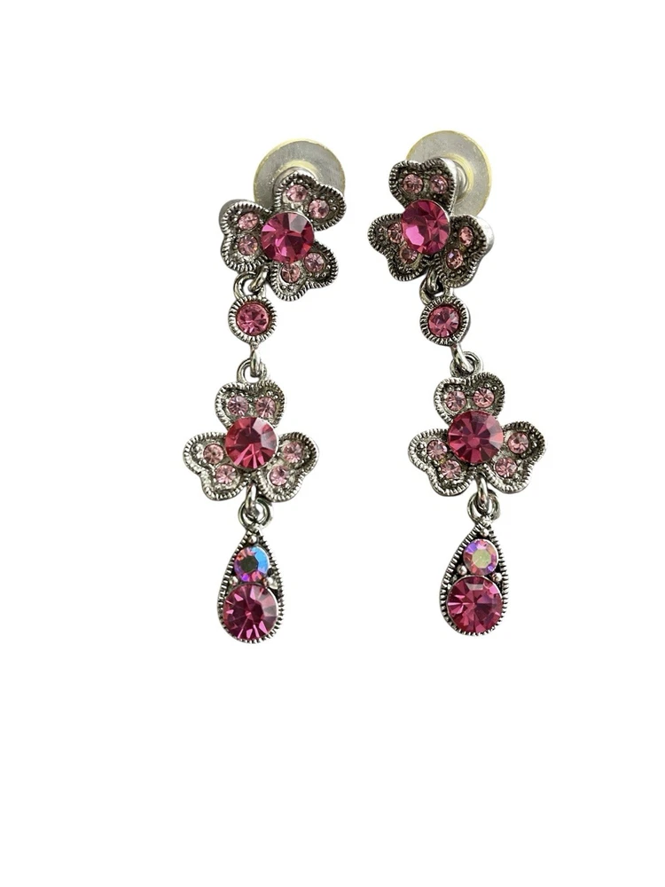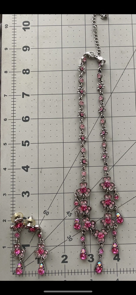 Pink Clover Three Leaf Dogwood? W Aurora Borealis Crystal Necklace &Earring Set. Condition is Pre-owned. Shipped with USPS Ground Advantage.