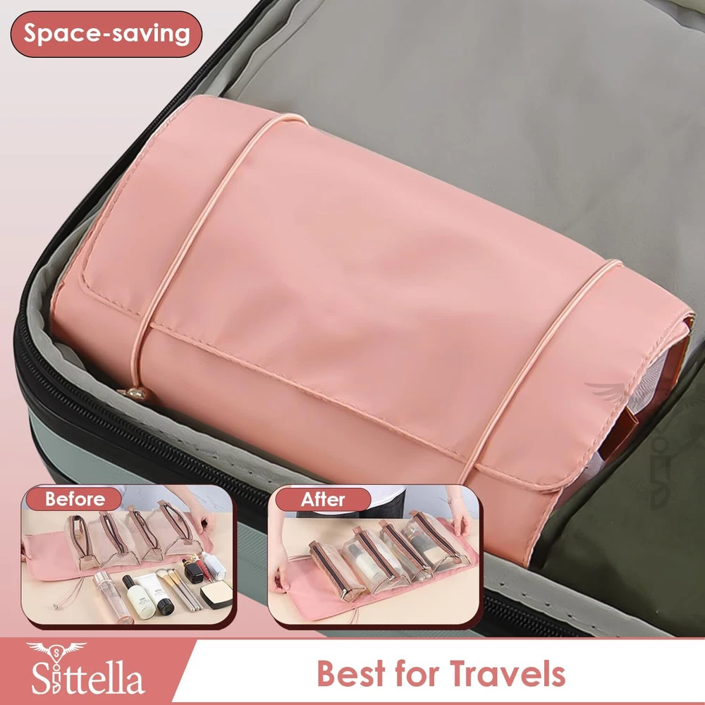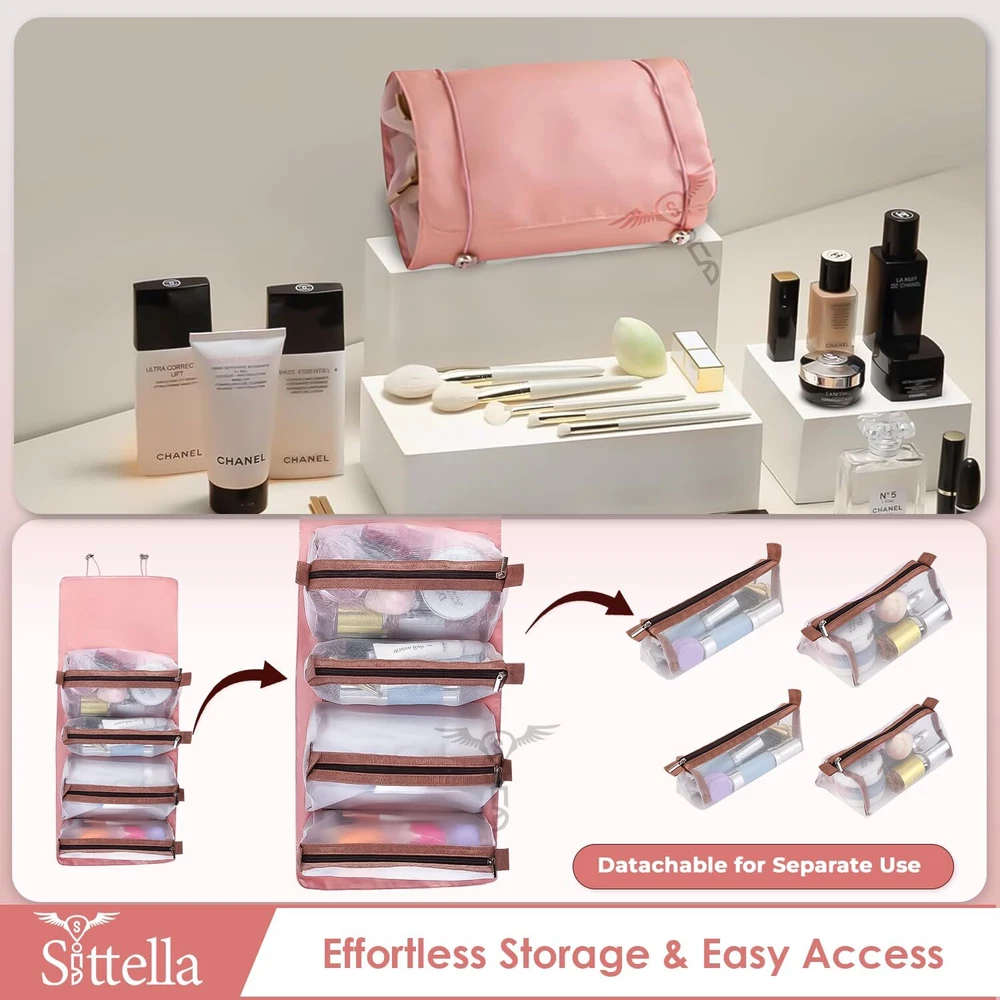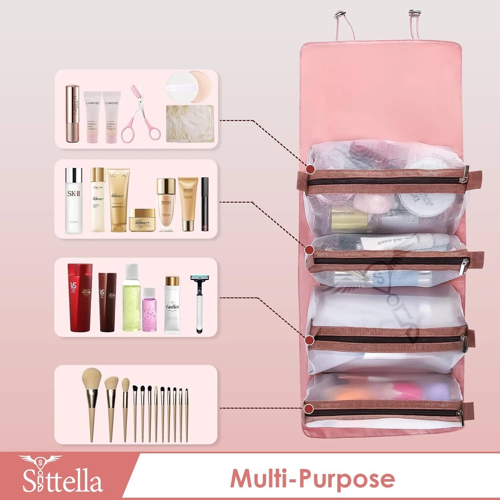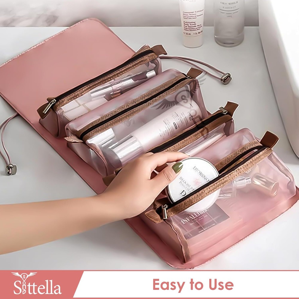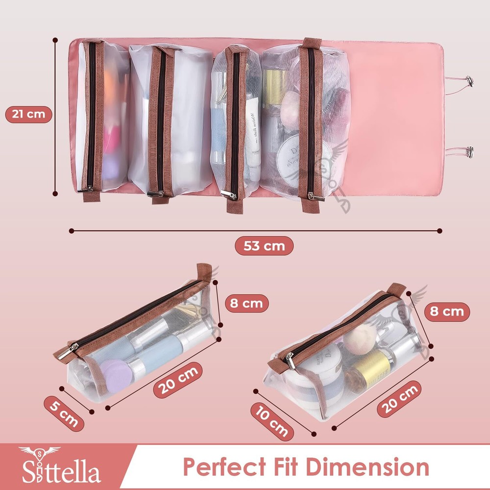 Sittella Cosmetic Pouch, Pink, Cosmetic Bag, Travel Accessories ✅ {MATERIAL}: Made up of Polyester fabric and detachable pouches with quality zippers. ✅ {EFFICIENT ORGANIZATION}: 4-in-1 design with separate compartments for cosmetics and toiletries ensures neat and accessible storage. ✅ {DURABLE & WATER-RESISTANT}: High-quality nylon and rust-resistant zippers offer longevity and protection against water damage. ✅ {SIZE & COLOR}: Length-53cm, Width-21cm, and Height-5cm and 2 different sizes of pouch to fit your items. It comes in Pink. ✅ {OPTIMAL SIZE}: Compact yet spacious enough to hold all essentials, making it perfect for various scenarios. ✅ {VERSATILE & PORTABLE}: Lightweight and foldable, suitable for travel or daily use, with adjustable straps for easy hanging. ✅ {PRACTICAL GIFT CHOICE}: Stylish and functional, ideal for gifting to friends, family, or anyone needing organized storage for their essentials. Description The hanging, roll-up makeup and toiletry organizer for home and travel. Perfectly Separate and organize your make-up, toiletry items, hair brushes, straightener, medicine according to their purpose. SHIPPING Domestic Buyers - We have confidence in our products, but if you are not fully satisfied please contact us within 30 days of purchase and you will get full refund. - We ship within 3 business days of payment, usually sooner - We offer FREE shipping on all orders! - We only ship to the lower 48 states, no APO/FPO addresses or PO Boxes allowed International buyers – please note: Import duties, taxes, and charges aren't included in the item price or postage cost. These charges are the buyer's responsibility. - Please check with your country's customs office to determine what these additional costs will be prior to bidding or buying. * Order Cancellation Policy ** You can return a product for up to 30 days from the date you purchased it. 1. The seller reserves the right to cancel the special case only due to eBay cancellation fee. 2. The decision of seller is the final. 3. The seller will respond to the cancellation request within 2 business days. Please wait for the result of cancellation. 4. In case the cancellation is not completed by some reasons, the buyer can follow the options below to get the refund. 4.1 The buyer can reject the item when it arrives. 4.2 The buyer can send the item back to the seller within 30 days If the buyer receives item (USA Shipment ONLY). The seller will provide the FREE return label to the buyer when the buyer opens " Return Item" case on eBay by using the reason as "Change my mind" ONLY. 5. When buyer has placed the order. The order will be processed and completed by automatic warehouse system within 5 minutes. In case that buyer sends the cancellation request after 5 minutes of placing the order, the request will be rejected. **Sending direct message to cancel the order is not allowed for every case.* Return Policy For the return case - If buyer would like to return the items for refund or replacement, please CONTACT SELLER to receive the free return label from seller. The refund or replacement will be processed with the tracking number of return label which is provided by seller only. The other ways of return which are not approved by seller will not be processed for the refund or replacement.
