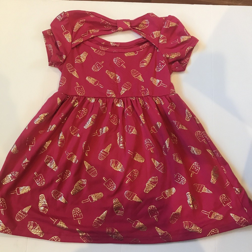 Members Mark Flip Flop Dress - Girls - 3T - Pink. Pink with Gold outlines of ice cream cones and popsicles 2nd picture is back of dress