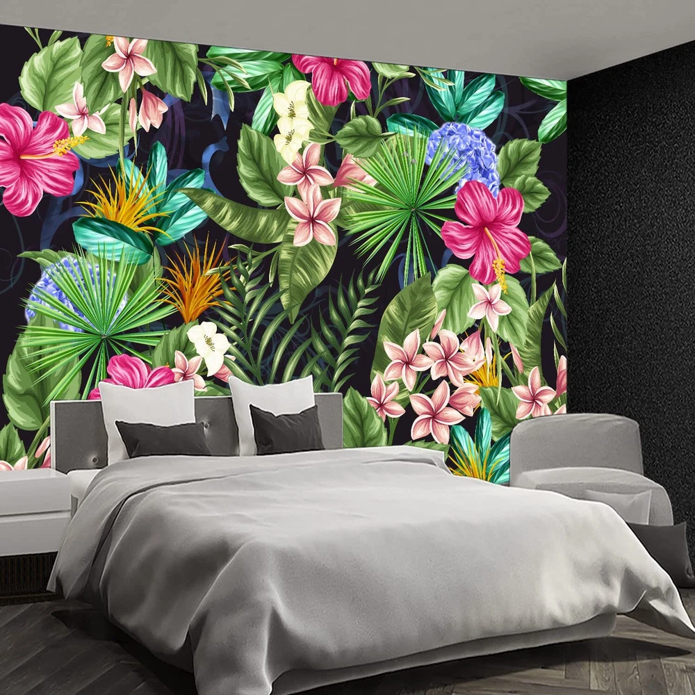 Why choose murals? individuality wallpaper VS traditional wallpaper 1.Our murals are different from ordinary wallpapers, we them individuality murals. individuality mural patterns can be colorful, traditional wallpaper patterns are very monotonous 2.He is the same as the traditional wallpaper construction method. 3.The traditional wallpaper will be broken as soon as it is torn, and the individuality wallpaper is made of good raw materials, and it will not be damaged no matter how it is torn. individuality wallpaper VS self-adhesive wallpaper Self-adhesive, he does have an advantage, that is, construction does not require auxiliary materials, just peel and paste. However, he also has many shortcomings. 1.He falls off easily, as fast as a few days. After all, self-adhesive glue is no match for heavy-duty wallpaper glue. There is no doubt about this. 2. Wrinkles appear in the installation of self-adhesive wallpaper, and it is directly scrapped. individuality wallpaper installation wrinkles, just scrape them off. 3.The so-called "removable wallpaper" of stickers is actually a lie. Any wallpaper, as long as it is attached to the wall, is impossible to tear off and continue to use. 4.The picture texture and color saturation of self-adhesive wallpapers are not as good as those of individuality wallpaper materials. Customers who have bought should know. Currently we have many style wallpapers. For example: forests, sandy beaches, cities, flowers, banana leaves, jungles, landscapes, cartoons, 3d murals, each series has many pictures for everyone to choose from. At the same time, More style wallpapers are being updated, so stay tuned. Thanks! It has to be said here that the effect of many customers after construction is very good and perfect. You get what you want and you are the best. murals love you. Size:the mural measures W108"xH75" divided into 21.6"x75"x5 parts Material:the raw material for our murals is fabric Features:high toughness, not easy to damage. waterproof and stain resistant, easy to take care of. Style:flowers,black,floral,tropical,botanical,banana leaf,plant, Whether self-adhesive:not peel and stick. recommended use heavy duty wallpaper adhesive Applicable scenarios:home,bedroom,living room,meditation room,office,interior decor. Installation instructions:there is a serial number under the mural, you can match it directly.