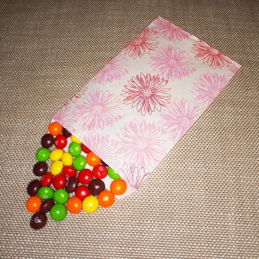 Pink Flower Flat Paper Gift Bags 200pcs (4" x 6") for Merchandise, Crafts, Pa...