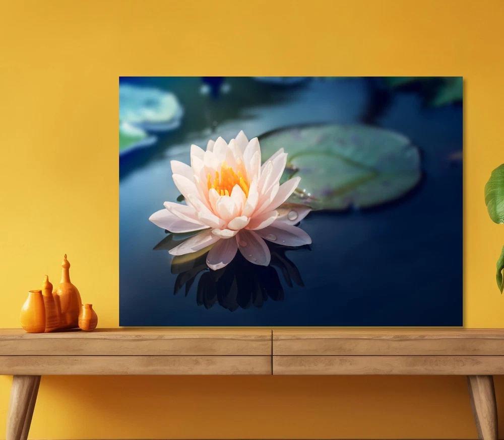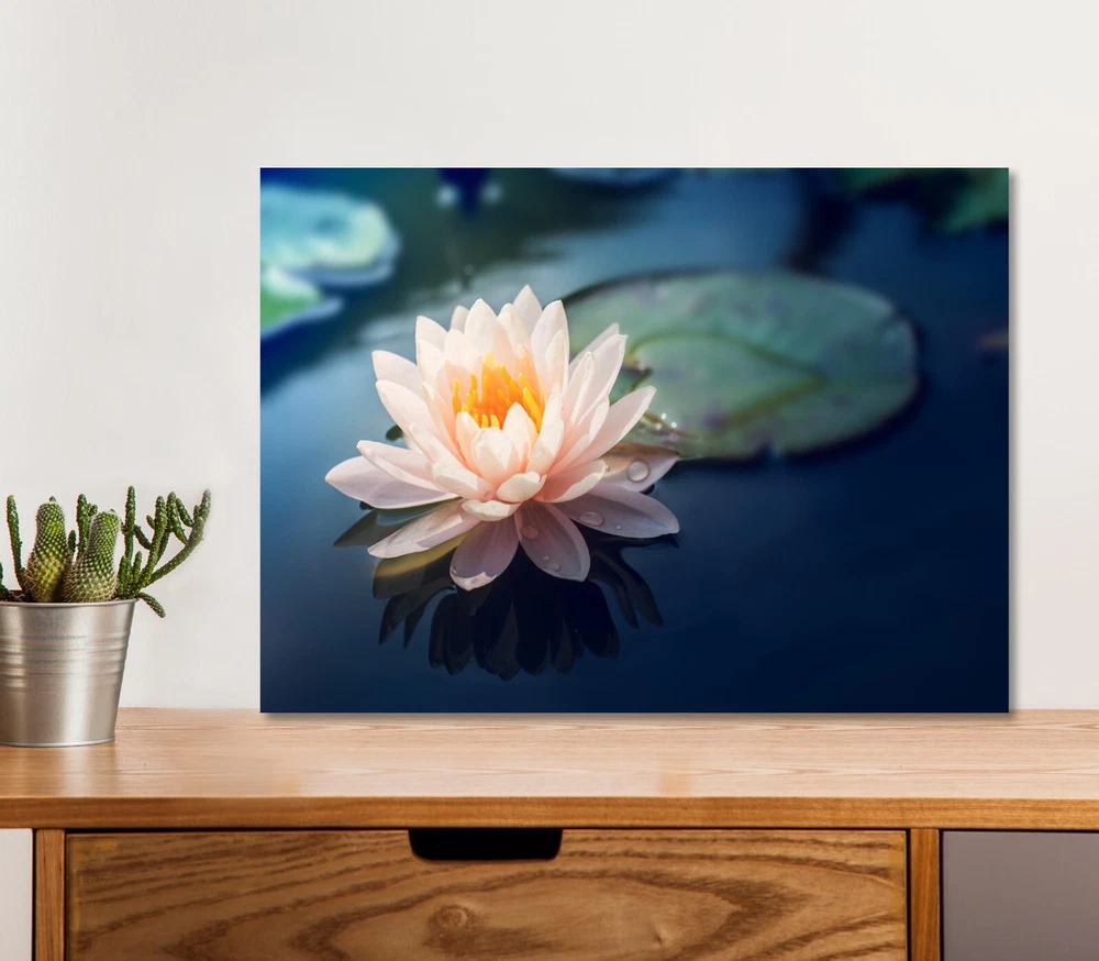 Pink Flower Floating on Pond 5mm thick Plastic Poster Ready to Hang 60x45cm