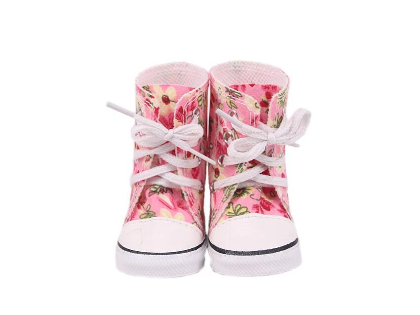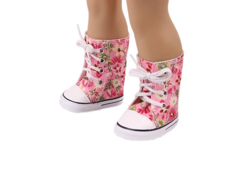 Pink Flower high top tie boots made for 18'' American girl doll sneakers