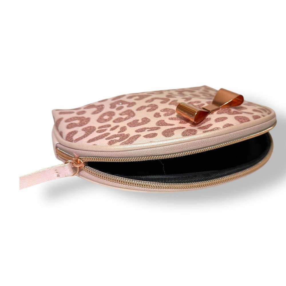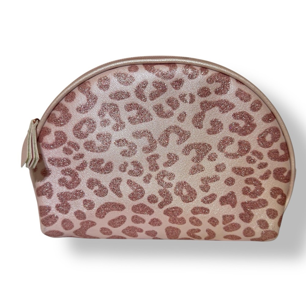 Product Pink Glitter Leopard Print Faux Leather Cosmetic Makeup Bag w Rose Gold Metal Bow & Pink Tassel Zipper Pull New and unused - Size Length 9 inches, Height 6.5 inches and Width 2 inches About Us: All items are new and authentic. Please message us with any questions you have! We are happy to help.