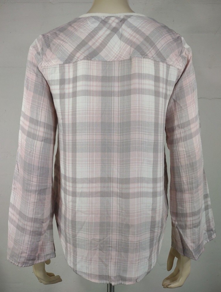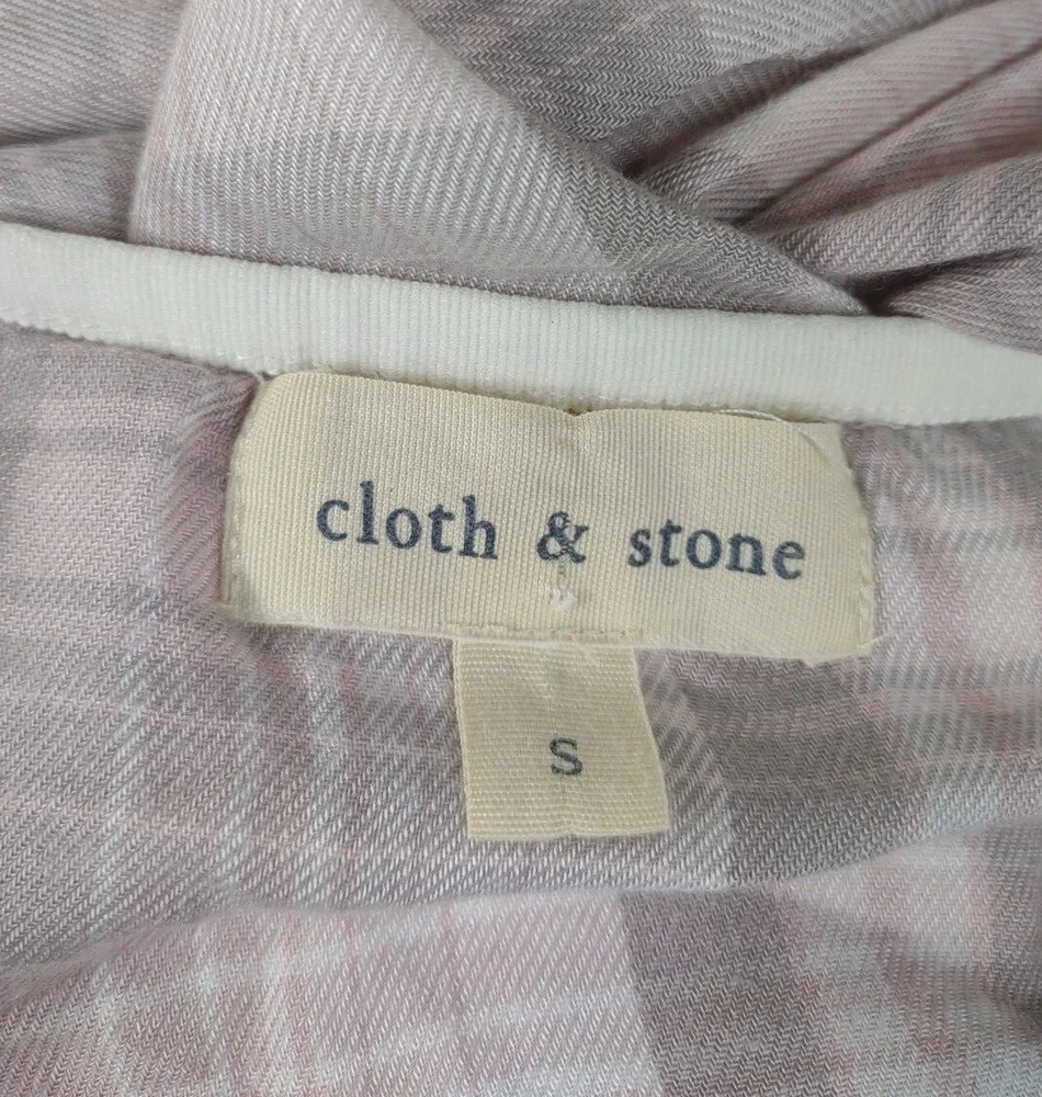 ladies long sleeve blouse Cloth & Stone brand light pink, gray, white size S (Please refer to measurements below) 50% rayon, 50% acrylic Excellent pre-owned condition!! No flaws to speak of. Would make a great gift! Measurements lying flat: Bust (pit to pit): 19 inches. Length (from nape of neck to bottom hem): 25 inches. Policies and Disclosures: RETURNS: Returns are accepted within 30 days of purchase. Buyer is responsible for return shipping. All items from this store come with an identification tag; Item(s) must be returned in original condition with the I.D. tag intact for a refund. SHIPPING: I do combine shipping when multiple items are purchased. In order to provide you with the least expensive price, you will need to send me a message requesting an invoice with combined shipping. CLOTHING: My goal is to sell only the finest quality new and gently used clothing items in my stores, and I strive for 100% satisfaction with every order. While my home is smoke-free, other pre-owned items from different sources cannot be guaranteed as smoke-free or pet-free. It is assumed that you as the buyer will be cleaning the garment once it arrives to you, so unless there is an obvious stain or odor, the clothing has not been laundered. I felt it was best left up to the buyer so no issues would surface regarding detergent allergies, shrinking, etc. Please note that any must or smoke odors can almost always be completely removed by adding 1 cup of distilled white vinegar to your normal wash cycle. I provide measurements on all my clothing items so that you, as the buyer, can make an informed decision about your purchase. Please use that information to compare it with a garment that fits you well to determine if the item will work for you. Seller will not assume responsibility for return postage on items that do not fit. COMMENTS: Please note that every item I sell is described to the best of my knowledge and ability, however, I am a human being, so occasionally I do make mistakes. Colors may vary slightly between screens and monitors. Sizing can vary from brand to brand. If you have any questions about the item(s), free to ask and I will do my best to get back with you in a timely manner. If you have any issues with your purchase, please do not hesitate to contact me prior to leaving negative feedback so we can try to resolve the issue. I am flexible and easy to work with. If you see something you are interested in, feel free to make a reasonable offer! (On a side note: Lowball offers are insulting and will be declined.) Take a moment to browse my other items for sale. I offer a large variety of items, with new items daily, so there’s something for everyone! Thanks so much for taking the time to look and have a wonderful day!