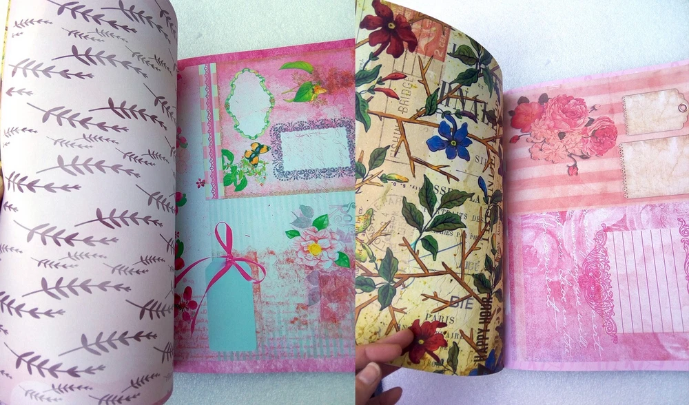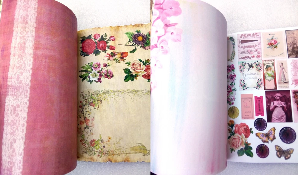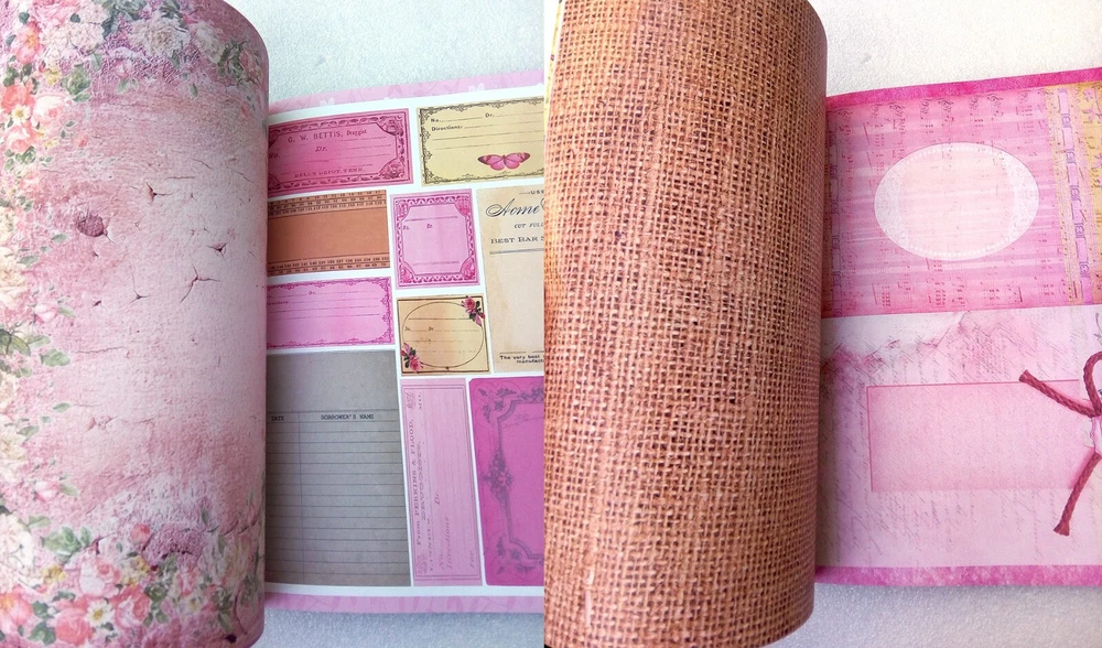Pink Junk Journal Kit Scrapbook Botanical Ephemera Book Flower s vintage pattern