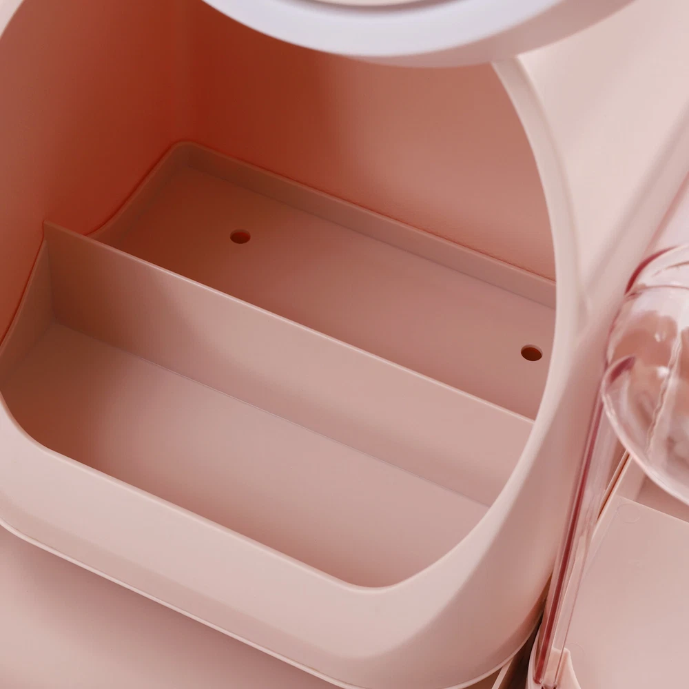 Specifications Material: HIPS and PS Color: Pink Style: Modern Light Source Type: 2835 LED Number of Lamp Beads: 120 InternalLength: 23cm/9.06inch 3 Level Led Light: 3200K Warm Yellow Light, 4200K Cool White Light, and 6500K Natural Light Mounting Type: Tabletop Battery Cell Type: Lithium Battery Battery Capacity: 1200mAh Number of Compartments: 4 Service Time: Continuous Use for 1-3 hours, Interrupted Use for about 12 hours Net Weight: 2.7kg/5.95lbs Gross Weight: 2.9kg/6.39lbs Product Size: 37*21*33.5cm/14.6*8.3*13inch Package Size: 40.5*22.5*37cm/15.94*8.86*14.57inch Package Included 1*Makeup Organizer 1* Chinese Instructions Desktop Cosmetic Storage Box Makeup Jewelry Beauty Case W/ Mirror Led Light Pink Description The exquisite makeup shows our attitude towards life, and the makeup process can let us enjoy ourselves. This makeup organizer can let more people see your beauty. Three different and adjustable light sources can create different styles of makeup for you. The 360-degree rotating mirror also can fully meet your needs. Large capacity provides enough space for you to store skin care products and cosmetics. With this product, your beauty will be further illuminated. Key Features Premium Material: This makeup organizer made of HIPS and PS with good tenacity and rich luster is not easy to split, so you can use it for a long time without frequent replacement. Excellent Light Source: This makeup organizer mainly uses LED light which can achieve 3D three-dimensional light supplements. The 120 light beads are evenly distributed, which can illuminate every inch of the skin and create a more complete makeup. Adjustable Design: Three different lights(warm yellow light, cool white light, and natural light)easily solve the problem of makeup light and create different styles of makeup. In addition, the mirror equipped with a light adjustment button can also rotate 360 ° left and right for optimum angle viewing. You can sit and stand to make up, fully meeting your needs. High Cost-performance: When you receive the product, you can have a make-up mirror, a dimming lamp, a storage box, and a mobile phone holder at the same time, so you don't need to buy them separately, which saves your costs. Split Storage: The makeup organizer is composed of four parts, providing enough space for you to store lipstick, foundation, makeup blush, eye shadow, eyebrow pencil, mask, perfume, jewelry, and other cosmetics. The top of the product can also be used for temporary storage. It is also convenient for you to classify and access items. Built-in Fan: This makeup organizer is equipped with a small fan, and its gentle wind can promote the absorption of water and lotion, save waiting time, make your makeup more comfortable, and reduce makeup loss caused by sweating. You can control it through the buttons on the mirror surface. Beautiful Appearance: The makeup organizer is pink, which is a color that will never go out of style, and can match a variety of styles and colors on the makeup table. With smooth lines, the whole product has a sense of modernity and fashion. Ideal Gift: With its beautiful appearance and large storage space, you can give it to your lovers, friends, and family to express your love for them, and it can also be regarded as a holiday gift, such as Valentine's Day and Christmas. Easy to Clean: The makeup organizer has a smooth surface and a proper size of 14.6*8.3*13inch, so you can clean it directly with a towel after a period of use. Ready to Use: The makeup organizer does not need to be assembled. You can use it directly after receiving the goods, which saves you time. Life Assistant: With this product, you can say goodbye to messy and unordered storage, creating a clean environment and a better makeup experience for you. Sufficient Energy: The battery capacity is 1200mAh, so it can be continuously used for 1-3 hours, and interruptedly used for about 12 hours after being fully charged, making it especially suitable for use on the go. Details Grooves: The back of the makeup organizer and the smooth drawer are both provided with grooves, through which you can easily move the makeup organizer, and store and take cosmetics. Mobile Phone Holder: This design allows you to make full use of your time. You can also watch your favorite TV play when making up, making the makeup process more pleasant. Round Corners: This makeup organizer is designed with rounded corners. Compared with the traditional square corners, it can better protect your safety and prevent skin from being scratched. Interior Heightening Area: The height of 23cm/9.06inch allows the makeup organizer to hold most bottled skin care products and is convenient for you to take items. Transparent Dust Cover: This transparent dust cover protects your skin care products and cosmetics from dust. In addition, you can easily see the items inside. HD Mirror: This mirror with multiple functions is not only conducive to controlling the brightness and fan but also can provide you with a more delicate and even makeup. Application This product is suitable for storing cosmetics and skin care products.it can be widely used in desktops, countertops, bathrooms, offices, dormitories, living rooms, bedrooms, dressing rooms, vanity organizers, travel, etc. Notes 1. Please use it on the table with an inclination of no more than 6 degrees to prevent it from toppling. 2. Please do not disassemble or bump the battery. Do not squeeze or put it into the fire. In case of mass production expansion, please do not continue to use it. Do not expose the battery to high temperatures. When the battery energy is low or there is no power, the switch button will not light up and close normally. Please charge it in time. 3. After starting the soft air fan, please open the mirror cover to blow out the soft air. Touch the fan key to turn on the fan, and touch it again to turn off the fan. 4. Touch the light key to turn on the light. Touch the switch twice or three times to