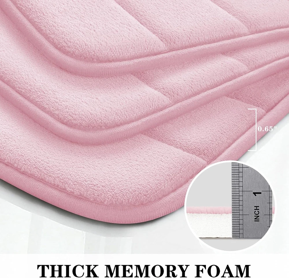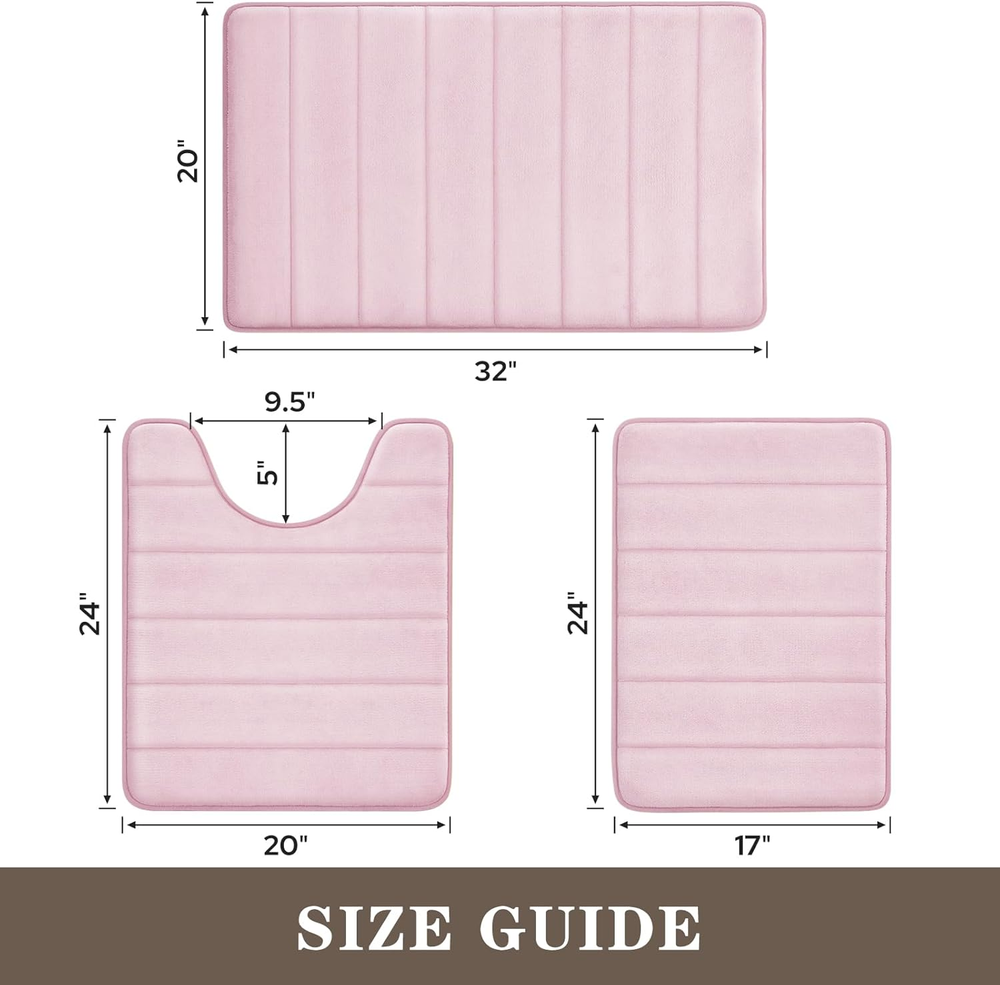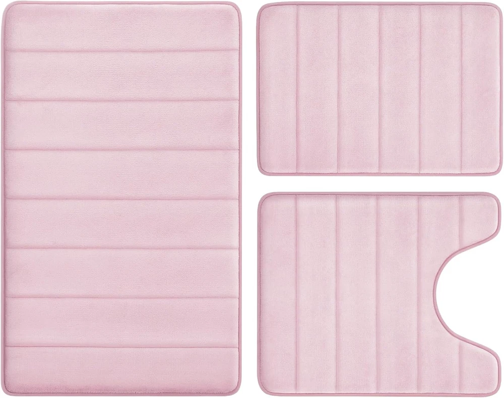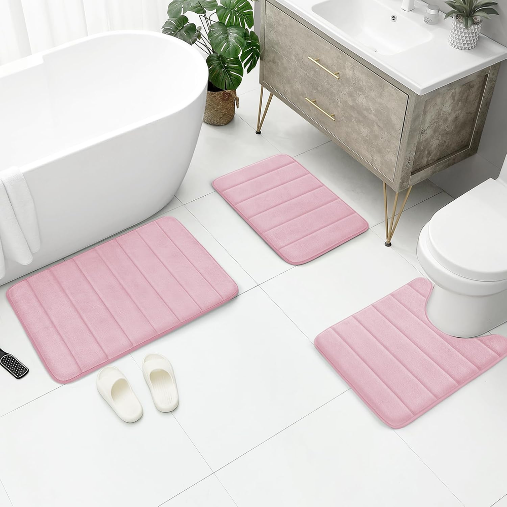 Pink Memory Foam Bathroom Rug Set 3 Piece, Non Slip Extra Soft Absorbent Machine