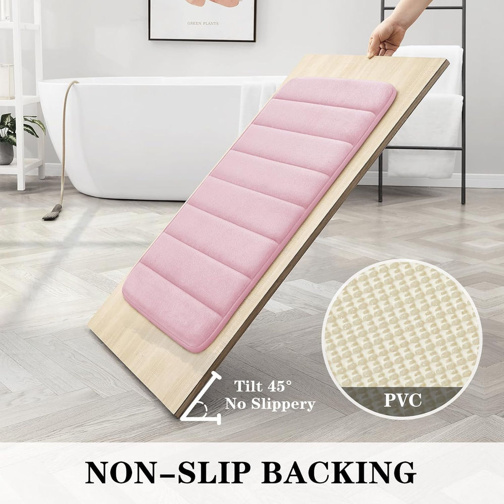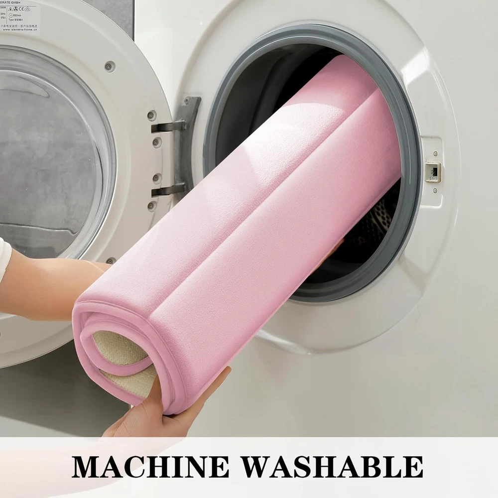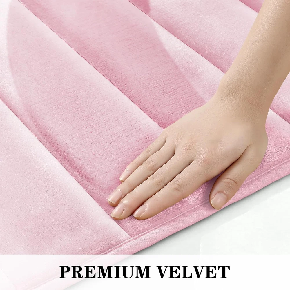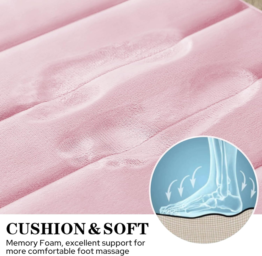 Pink Memory Foam Bathroom Rug Set 3 Piece, Non Slip Extra Soft Absorbent Machine
