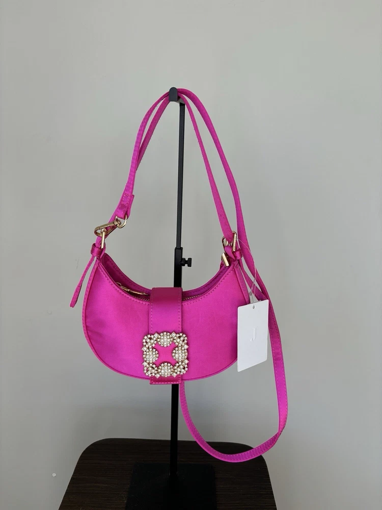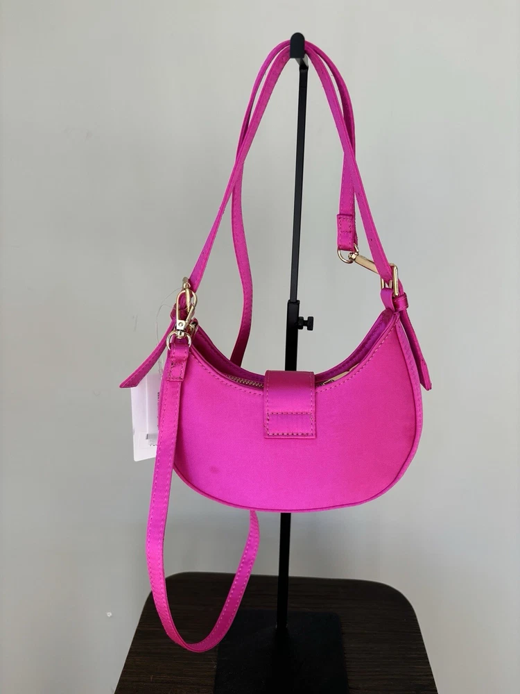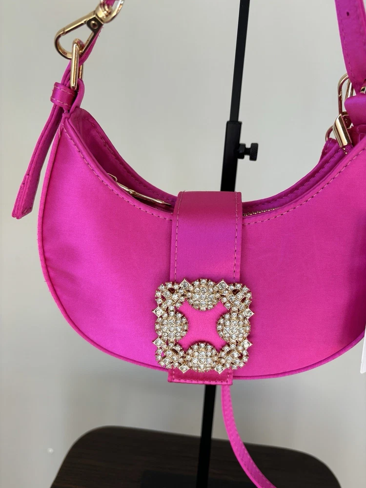 Pink Mini Evening Bag Gold Chain Handbag Event Satin