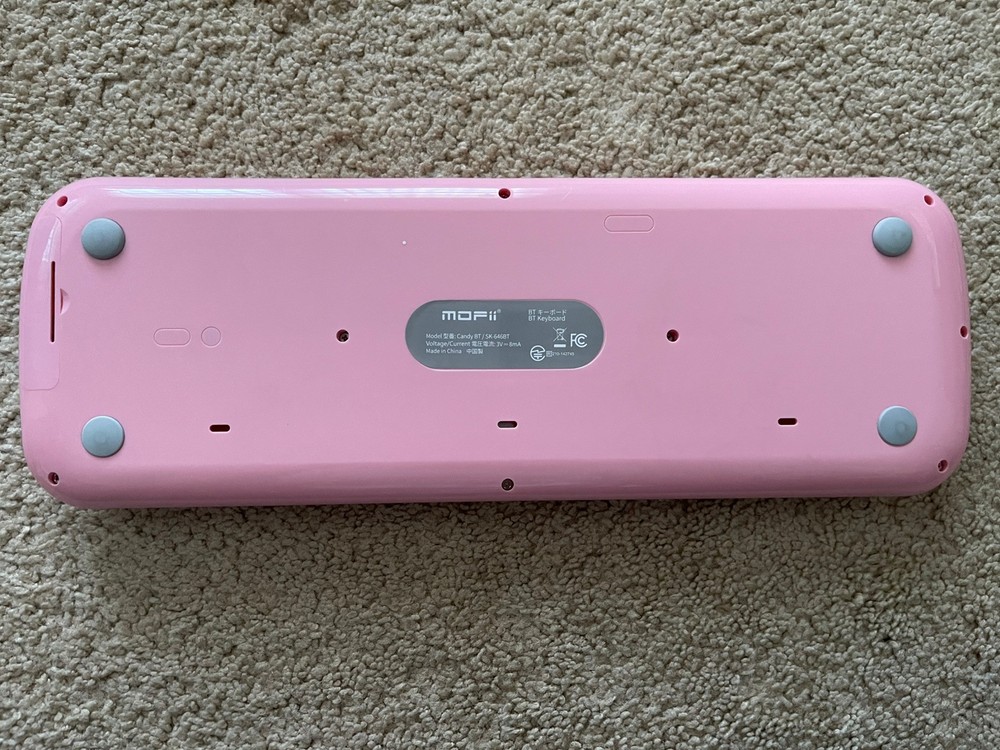 The Pink Mofii Bluetooth Keyboard is a stylish keyboard that connects via Bluetooth. Its color is a vibrant pink, making it a fun and fashionable accessory for your computer or tablet. It is designed for comfortable typing and convenient wireless connectivity.